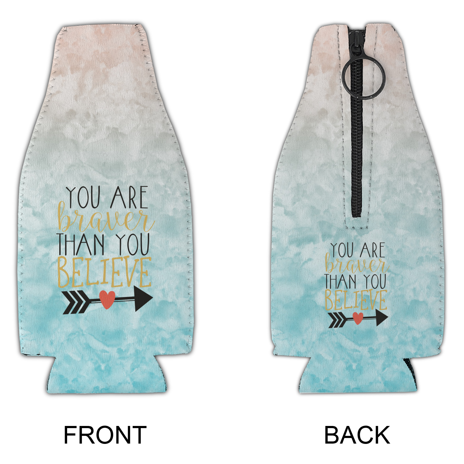 Fabricated from a thick, insulating neoprene, these custom can sleeve keep your drink cold, while proudly displaying your customization on all sides. These can sleeves are designed to fit most 12oz bottles. Available in two types - zipper cooler for insulating the full bottle or the jersey style for sports season. Also available as a single can sleeve or in a set of 4 for you to share with friends and family. For convenient storage, they can also be folded.