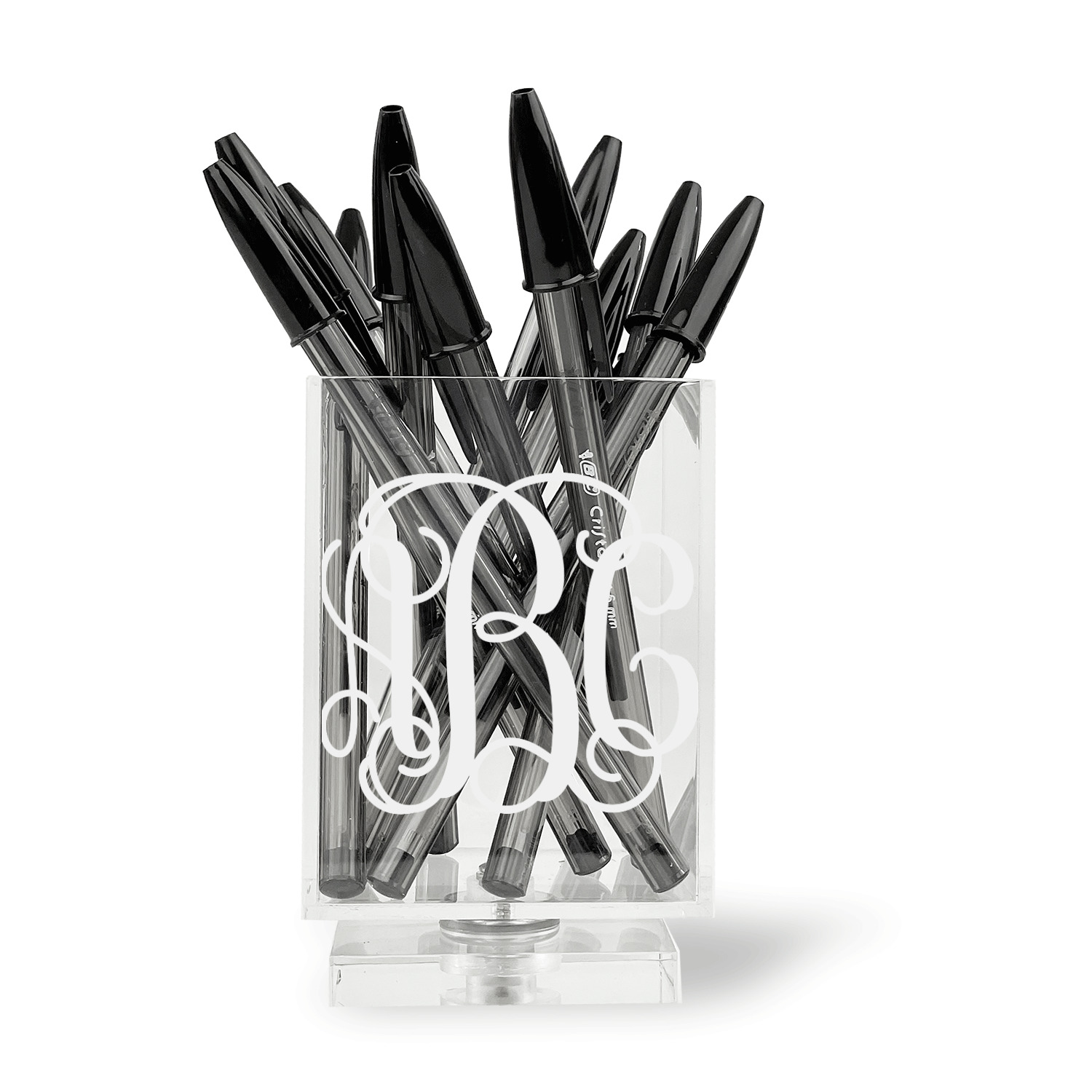 Add a great accessory to your desk with one of these acrylic pen holders. A great way to store your writing utensils, and personalized to suit your needs.