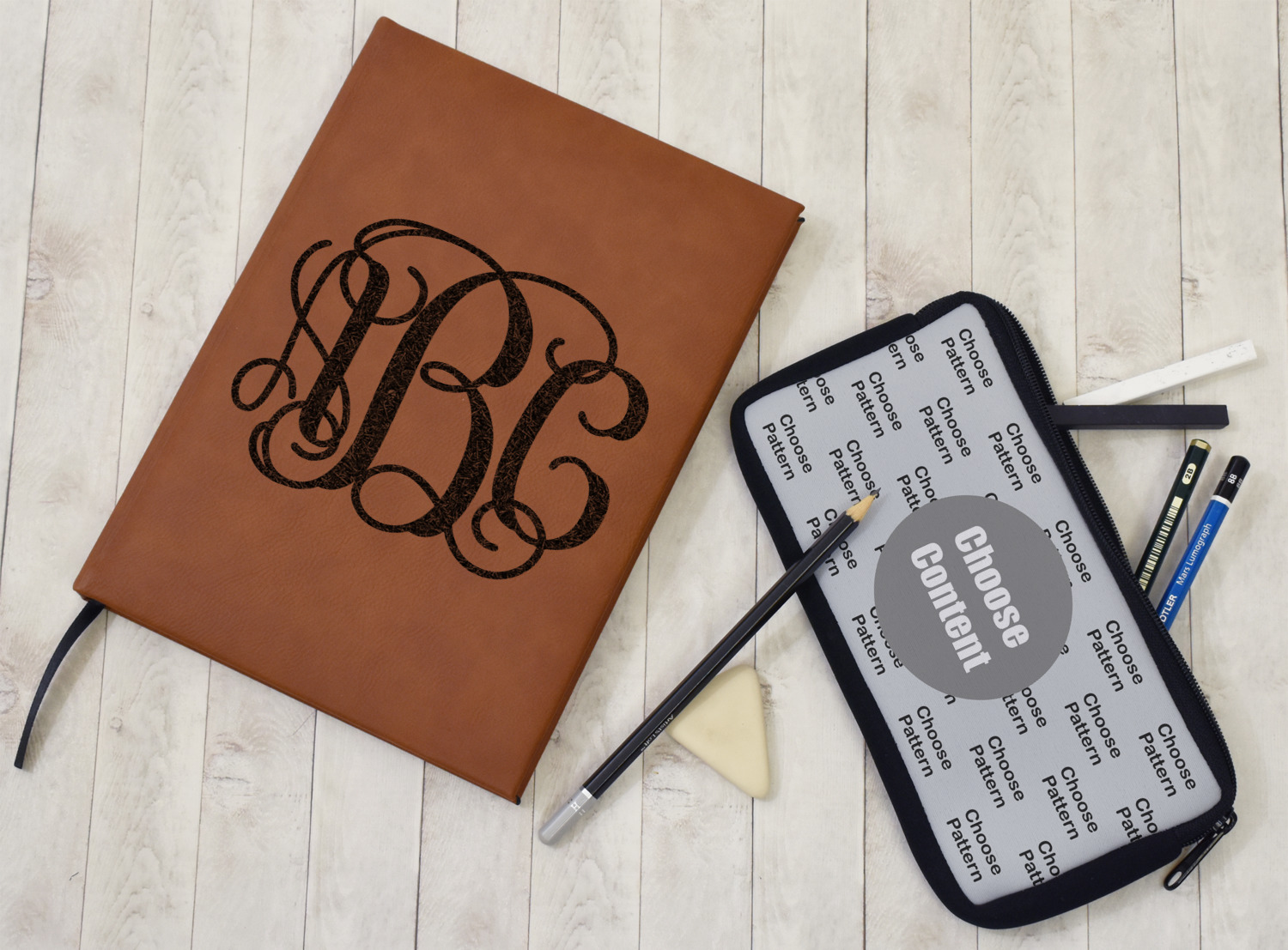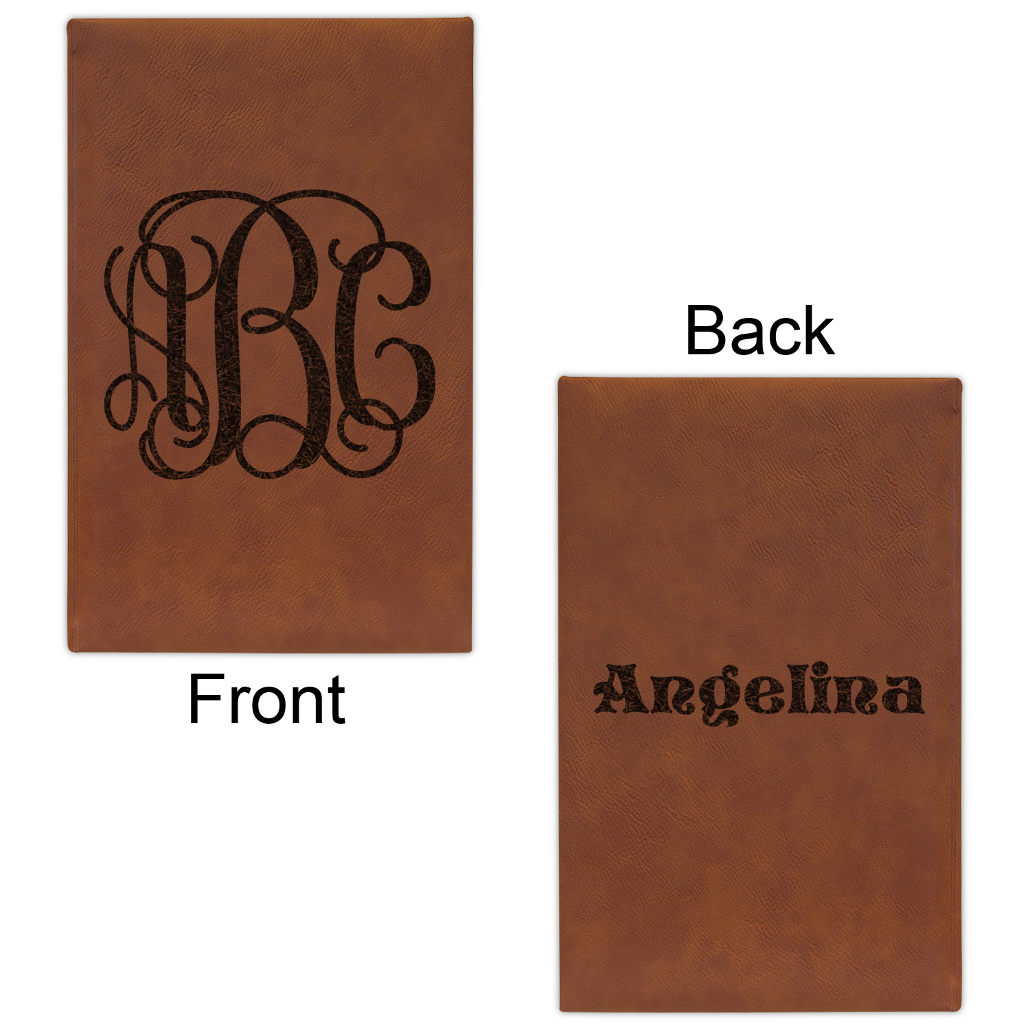 The faux leather covers are a rich cognac / rawhide color and can be customized with your design. From a simple name or monogram or a logo to a detailed mandala - the choice for customization & personalization is truly yours. Customize one of our designs or upload your own.