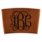 This cup sleeve is made from a suave, cognac-brown leatherette and finished with an intricate, black stitch. The interior of this can sleeve is fabricated from a thin foam material to help insulate your mug's contents. The sleeve is specifically made to suit tapered glasses or mugs, so the top's diameter is 3.5 inches, while the bottom's diameter is 2.75 inches. Your customized design will be laser engraved into the leatherette, leaving behind crisp, black imprint. With these products, we provide you with the option of engraving the front and back, or the front only.