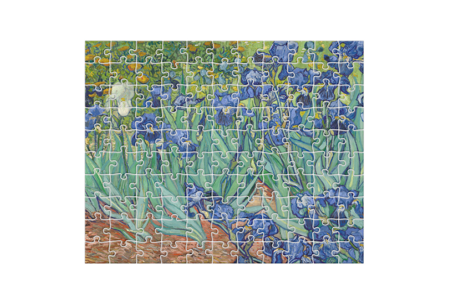 Irises is one of several paintings of irises by the Dutch artist Vincent van Gogh, and one of a series of paintings he executed at the Saint Paul-de-Mausole asylum in Saint-Remy-de-Provence, France, in the last year before his death in 1890. Van Gogh started painting Irises within a week of entering the asylum, in May 1889, working from nature in the hospital garden. There is a lack of the high tension which is seen in his later works. He called painting "the lightning conductor for my illness" because he felt that he could keep himself from going insane by continuing to paint. The painting was probably influenced by Japanese ukiyo-e woodblock prints like many of his works and those by other artists of the time. The similarities occur with strong outlines, unusual angles, including close-up views, and also flattish local colour (not modelled according to the fall of light).(Source: Wikipedia)
