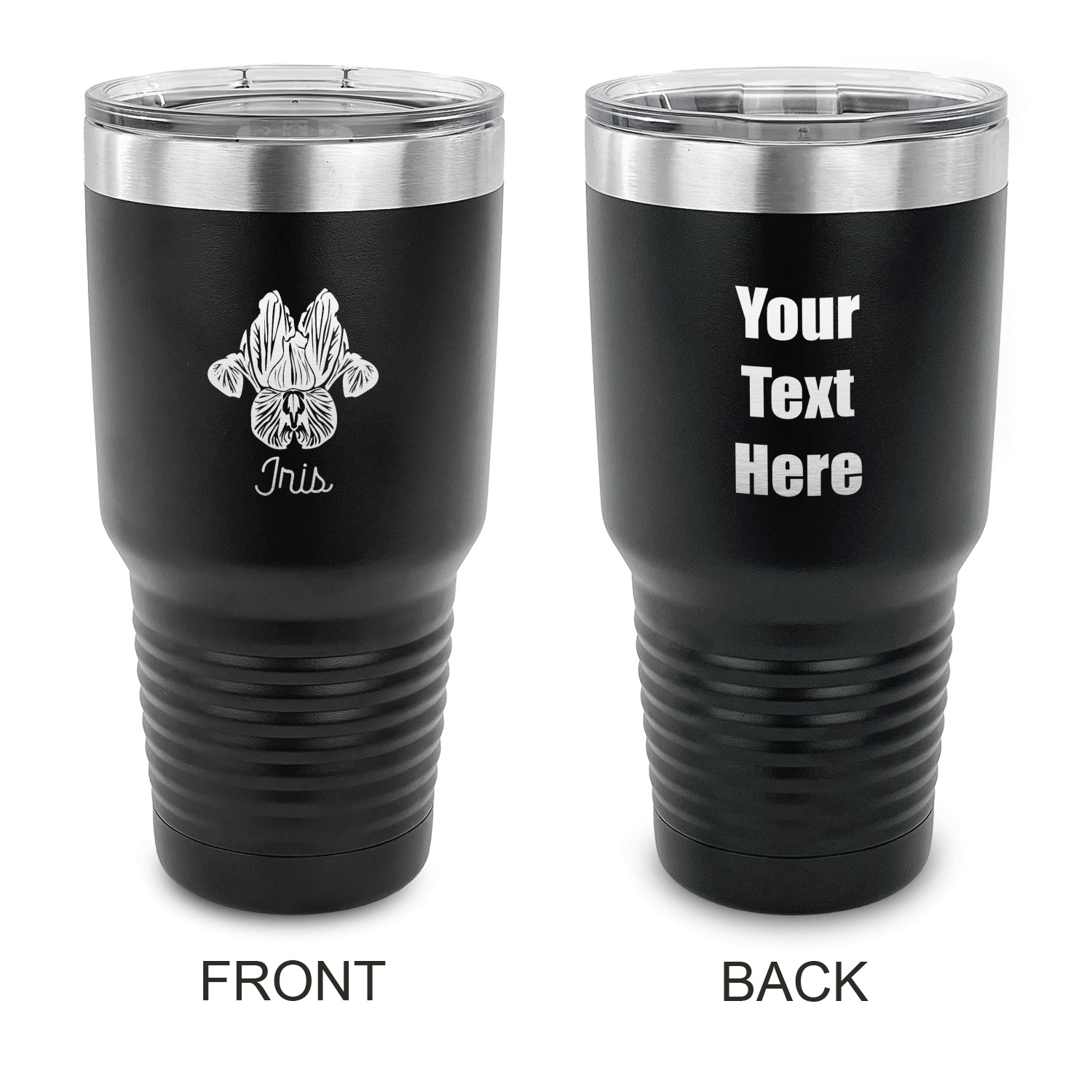 With the 5 colors - Black, Navy, Red, Pink and Coral, you are sure to find a cup to fit your personality. You can chose to engrave on the front or the front and back of the cup. Use our design studio to design your own cup and we laser engrave it for you.