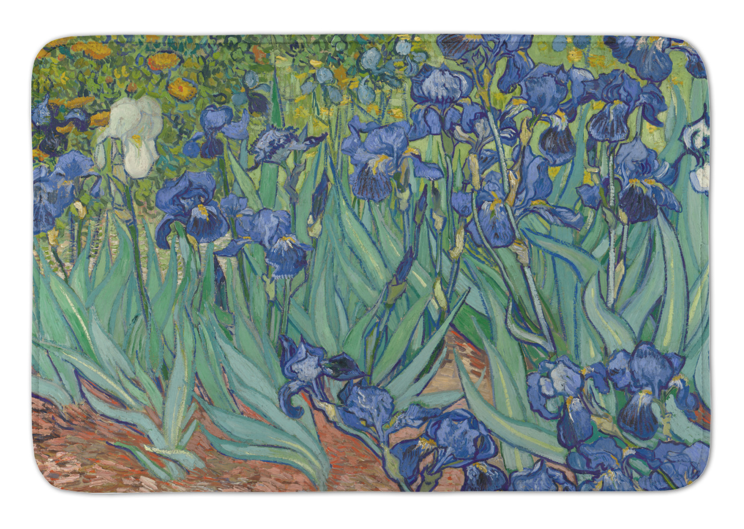 Irises is one of several paintings of irises by the Dutch artist Vincent van Gogh, and one of a series of paintings he executed at the Saint Paul-de-Mausole asylum in Saint-Remy-de-Provence, France, in the last year before his death in 1890. Van Gogh started painting Irises within a week of entering the asylum, in May 1889, working from nature in the hospital garden. There is a lack of the high tension which is seen in his later works. He called painting "the lightning conductor for my illness" because he felt that he could keep himself from going insane by continuing to paint. The painting was probably influenced by Japanese ukiyo-e woodblock prints like many of his works and those by other artists of the time. The similarities occur with strong outlines, unusual angles, including close-up views, and also flattish local colour (not modelled according to the fall of light).(Source: Wikipedia)
