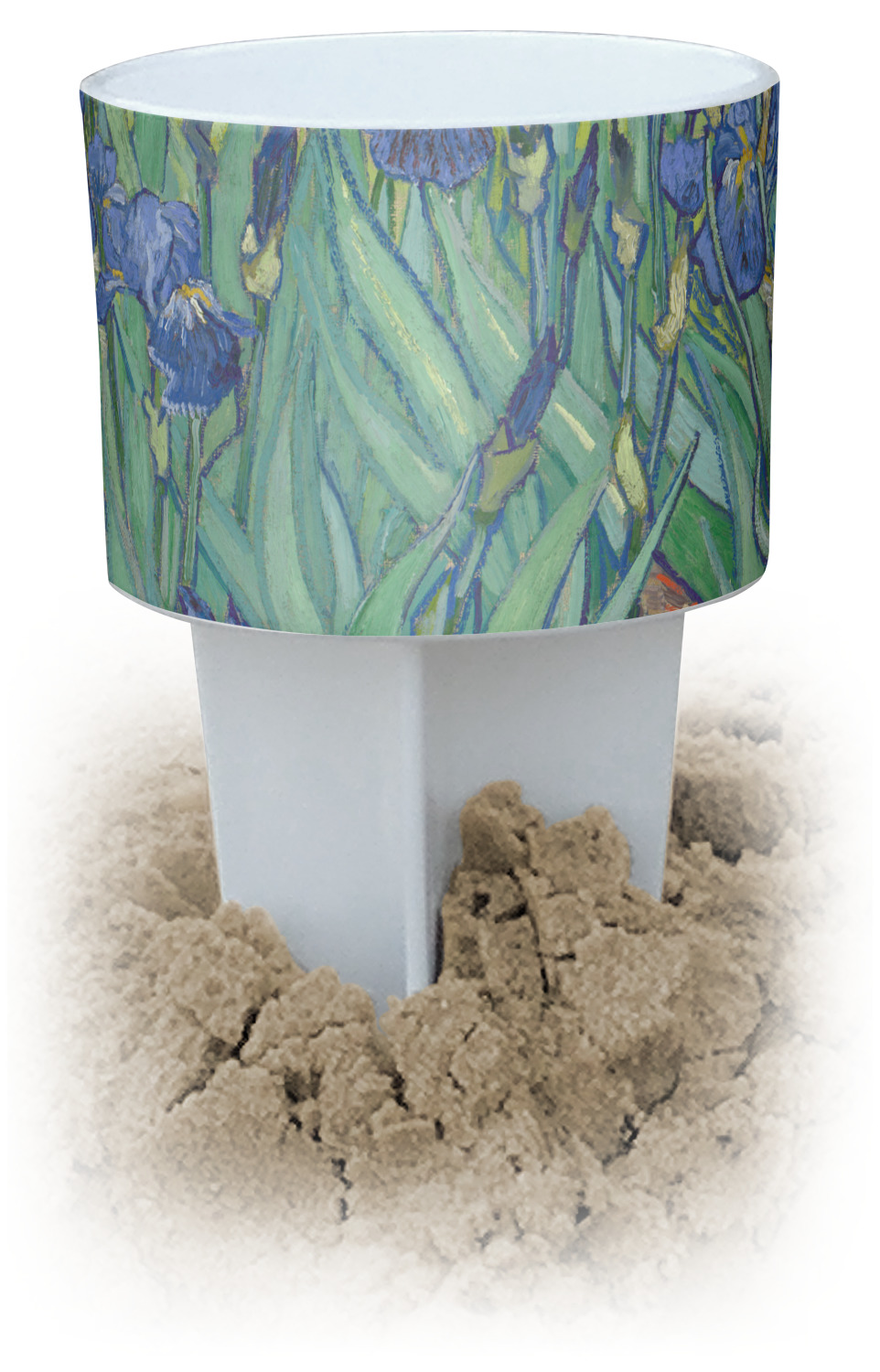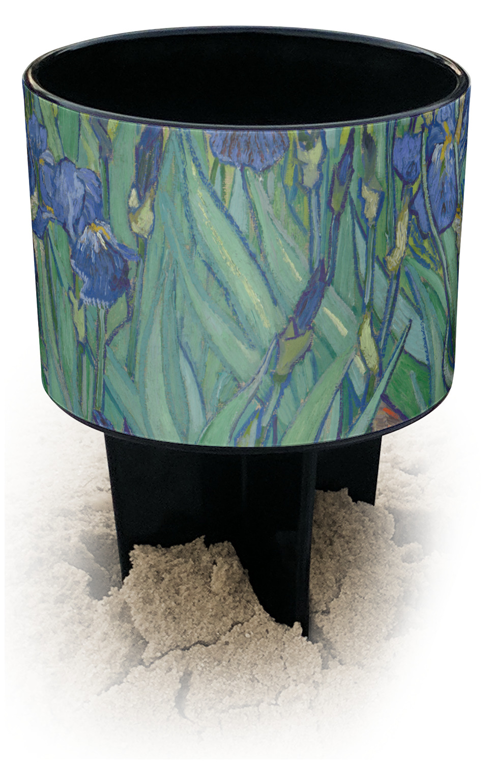 This cup holder has a large stake at its bottom that anchors it to the sand or ground below, while the cup holder rests above the stake. The entire drink holder is made of durable plastic and displays your customization around the cup holder portion. We sell these personalized beach spikers in two different colors: black and white.