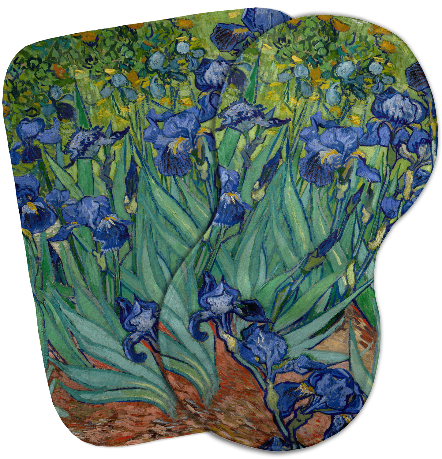 Irises is one of several paintings of irises by the Dutch artist Vincent van Gogh, and one of a series of paintings he executed at the Saint Paul-de-Mausole asylum in Saint-Remy-de-Provence, France, in the last year before his death in 1890. Van Gogh started painting Irises within a week of entering the asylum, in May 1889, working from nature in the hospital garden. There is a lack of the high tension which is seen in his later works. He called painting "the lightning conductor for my illness" because he felt that he could keep himself from going insane by continuing to paint. The painting was probably influenced by Japanese ukiyo-e woodblock prints like many of his works and those by other artists of the time. The similarities occur with strong outlines, unusual angles, including close-up views, and also flattish local colour (not modelled according to the fall of light).(Source: Wikipedia)