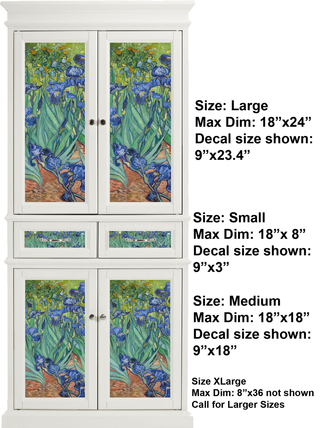 We print your customized design in full color, onto a high quality vinyl, covered with a glossy finish. For attachment to the cabinet, each cabinet sticker is accompanied by an easily applied, adhesive backing. The adhesive backing also guarantees a smooth removal or repositioning if desired. We sell these decals in four different sizes, but each size can be downsized appropriately to fit the needs of your kitchen. We offer a small, which is 18 by 8 inches, a medium, which is 18 by 18 inches, a large, at 24 by 18 inches, and an extra large, at 36 by 18 inches. We advise that you measure your cabinets first so you can make a properly informed purchase. For those who are interested in purchasing decals larger than 18 by 36 inches, please contact our team.