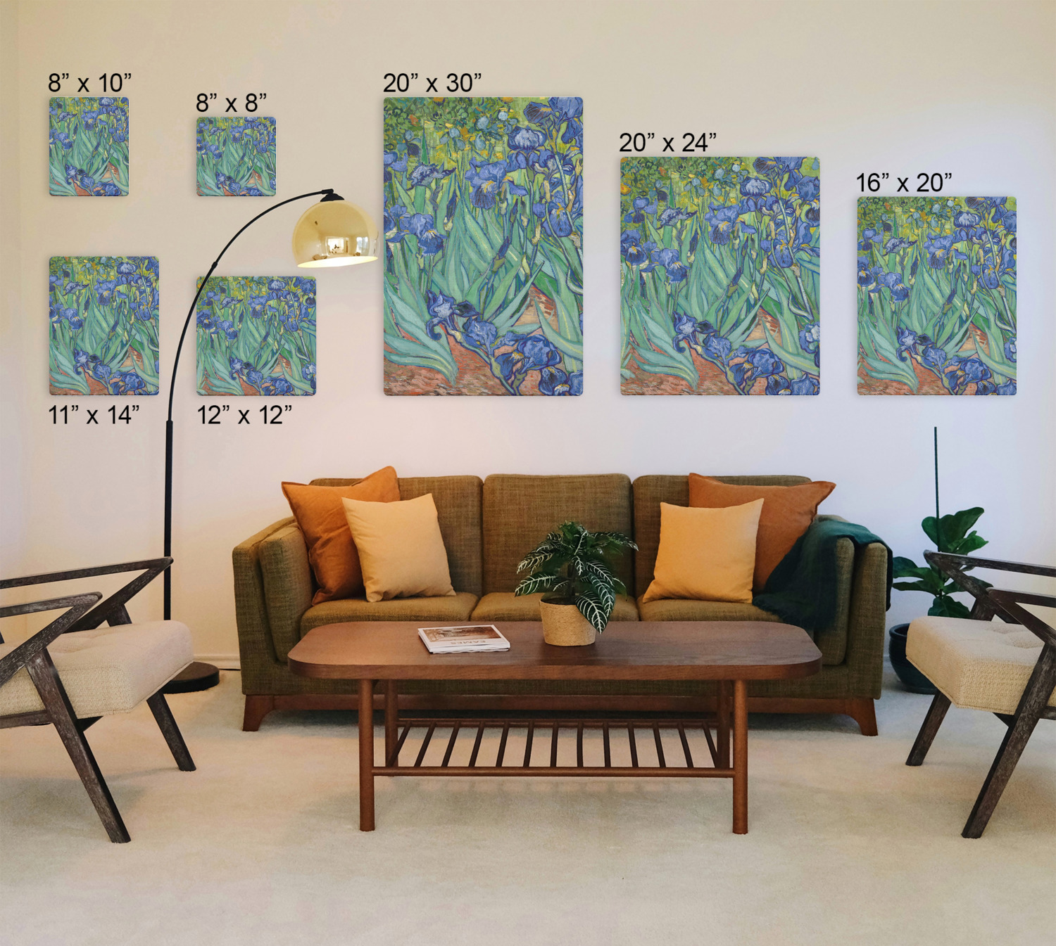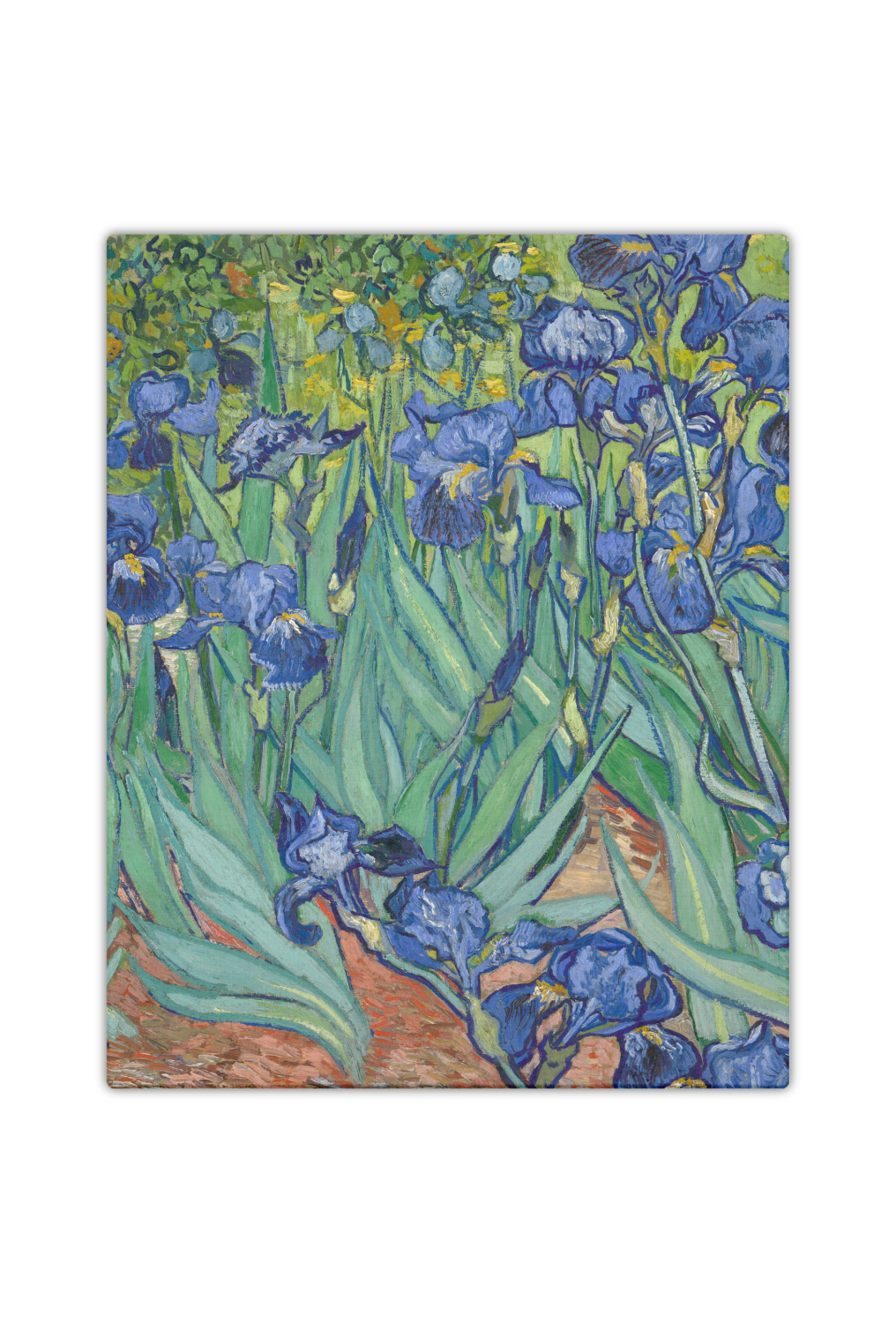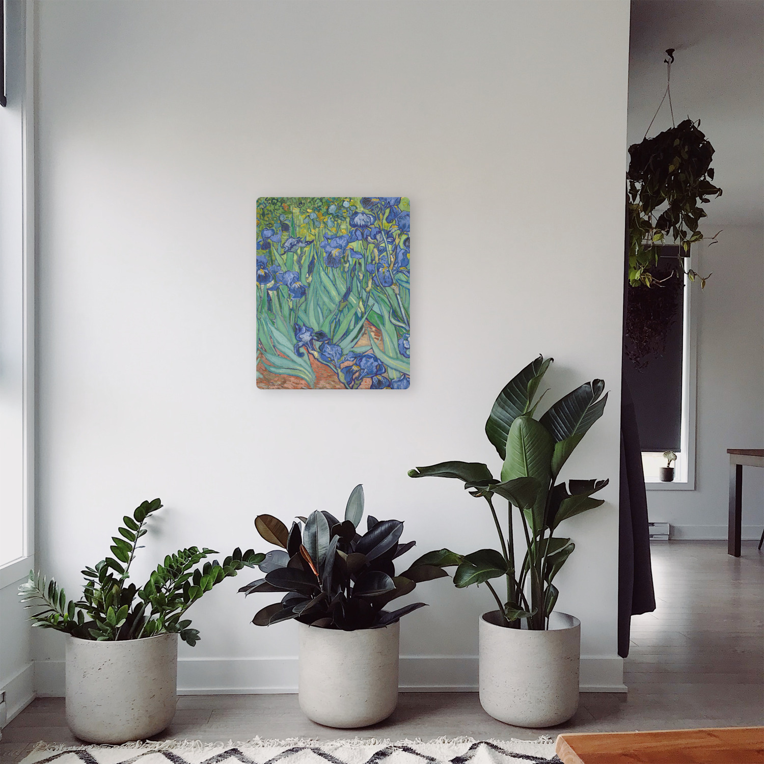Irises is one of several paintings of irises by the Dutch artist Vincent van Gogh, and one of a series of paintings he executed at the Saint Paul-de-Mausole asylum in Saint-Remy-de-Provence, France, in the last year before his death in 1890. Van Gogh started painting Irises within a week of entering the asylum, in May 1889, working from nature in the hospital garden. There is a lack of the high tension which is seen in his later works. He called painting "the lightning conductor for my illness" because he felt that he could keep himself from going insane by continuing to paint. The painting was probably influenced by Japanese ukiyo-e woodblock prints like many of his works and those by other artists of the time. The similarities occur with strong outlines, unusual angles, including close-up views, and also flattish local colour (not modelled according to the fall of light).(Source: Wikipedia)