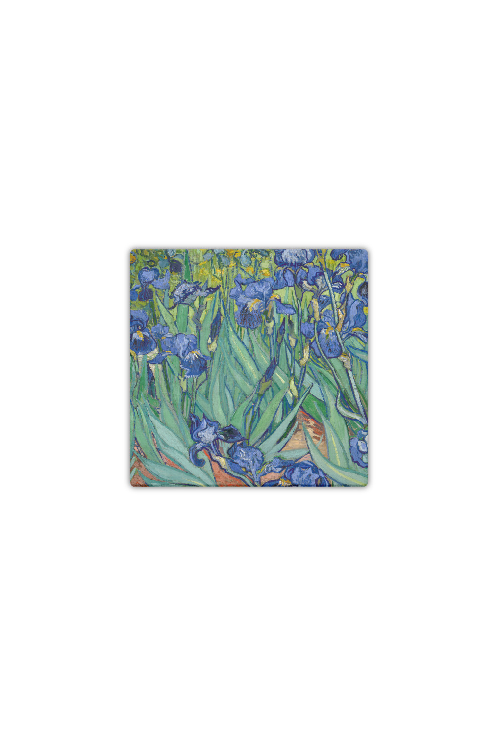 Irises is one of several paintings of irises by the Dutch artist Vincent van Gogh, and one of a series of paintings he executed at the Saint Paul-de-Mausole asylum in Saint-Remy-de-Provence, France, in the last year before his death in 1890. Van Gogh started painting Irises within a week of entering the asylum, in May 1889, working from nature in the hospital garden. There is a lack of the high tension which is seen in his later works. He called painting "the lightning conductor for my illness" because he felt that he could keep himself from going insane by continuing to paint. The painting was probably influenced by Japanese ukiyo-e woodblock prints like many of his works and those by other artists of the time. The similarities occur with strong outlines, unusual angles, including close-up views, and also flattish local colour (not modelled according to the fall of light).(Source: Wikipedia)