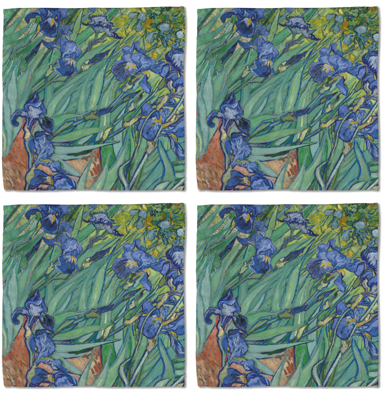 Irises is one of several paintings of irises by the Dutch artist Vincent van Gogh, and one of a series of paintings he executed at the Saint Paul-de-Mausole asylum in Saint-Remy-de-Provence, France, in the last year before his death in 1890. Van Gogh started painting Irises within a week of entering the asylum, in May 1889, working from nature in the hospital garden. There is a lack of the high tension which is seen in his later works. He called painting "the lightning conductor for my illness" because he felt that he could keep himself from going insane by continuing to paint. The painting was probably influenced by Japanese ukiyo-e woodblock prints like many of his works and those by other artists of the time. The similarities occur with strong outlines, unusual angles, including close-up views, and also flattish local colour (not modelled according to the fall of light).(Source: Wikipedia)