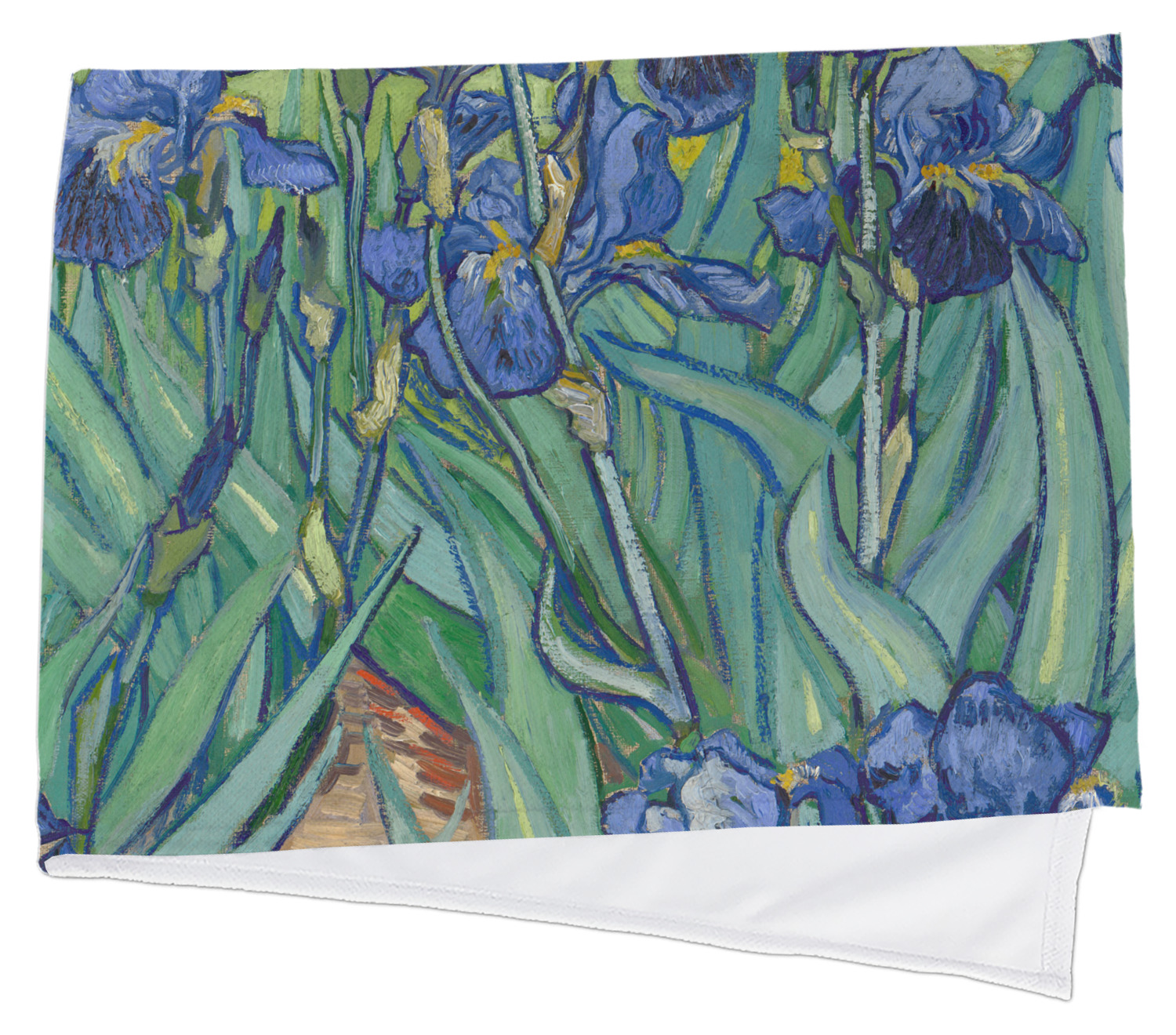 Now you can enjoy Irises on a daily basis. Well not all of it! To put this rectangular painting (roughly 4x3) on products, we use as much of the painting as we can on each product. So for a square product like the shower curtain - we use a 3x3 rectangle - which cuts off a little of the sides - but is still very much Irises For other products such as the wristlet (a wide 4x1 rectangle) - you get a small slice of the painting.