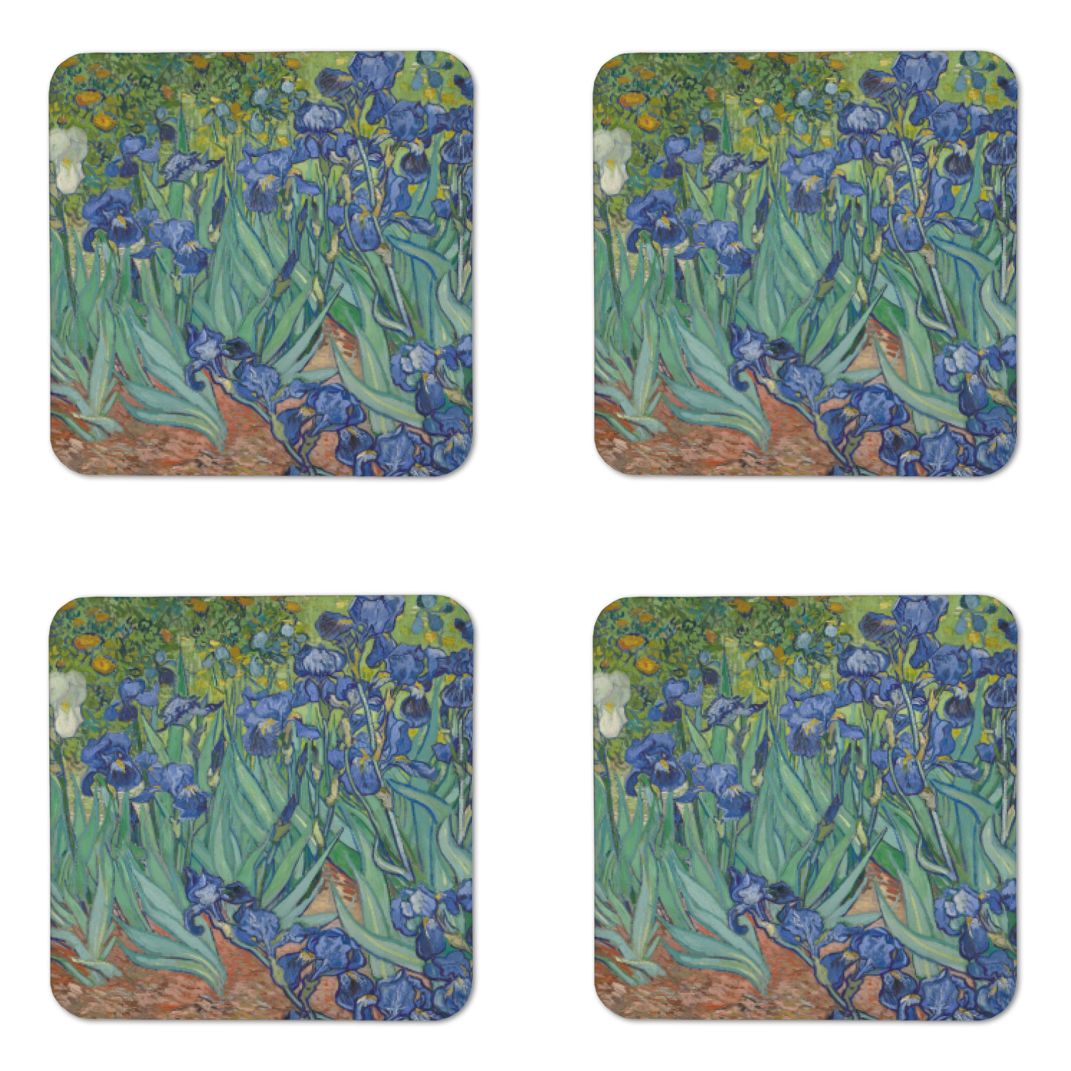 Irises is one of several paintings of irises by the Dutch artist Vincent van Gogh, and one of a series of paintings he executed at the Saint Paul-de-Mausole asylum in Saint-Remy-de-Provence, France, in the last year before his death in 1890. Van Gogh started painting Irises within a week of entering the asylum, in May 1889, working from nature in the hospital garden. There is a lack of the high tension which is seen in his later works. He called painting "the lightning conductor for my illness" because he felt that he could keep himself from going insane by continuing to paint. The painting was probably influenced by Japanese ukiyo-e woodblock prints like many of his works and those by other artists of the time. The similarities occur with strong outlines, unusual angles, including close-up views, and also flattish local colour (not modelled according to the fall of light).(Source: Wikipedia)