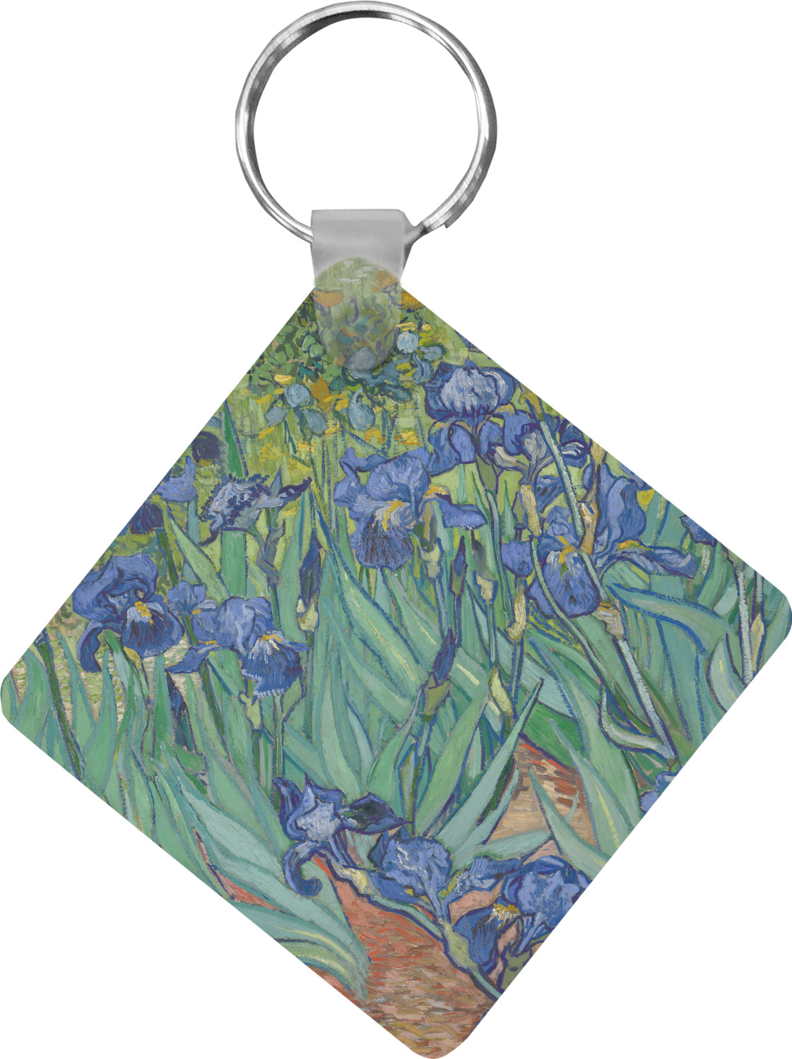 Irises is one of several paintings of irises by the Dutch artist Vincent van Gogh, and one of a series of paintings he executed at the Saint Paul-de-Mausole asylum in Saint-Remy-de-Provence, France, in the last year before his death in 1890. Van Gogh started painting Irises within a week of entering the asylum, in May 1889, working from nature in the hospital garden. There is a lack of the high tension which is seen in his later works. He called painting "the lightning conductor for my illness" because he felt that he could keep himself from going insane by continuing to paint. The painting was probably influenced by Japanese ukiyo-e woodblock prints like many of his works and those by other artists of the time. The similarities occur with strong outlines, unusual angles, including close-up views, and also flattish local colour (not modelled according to the fall of light).(Source: Wikipedia)