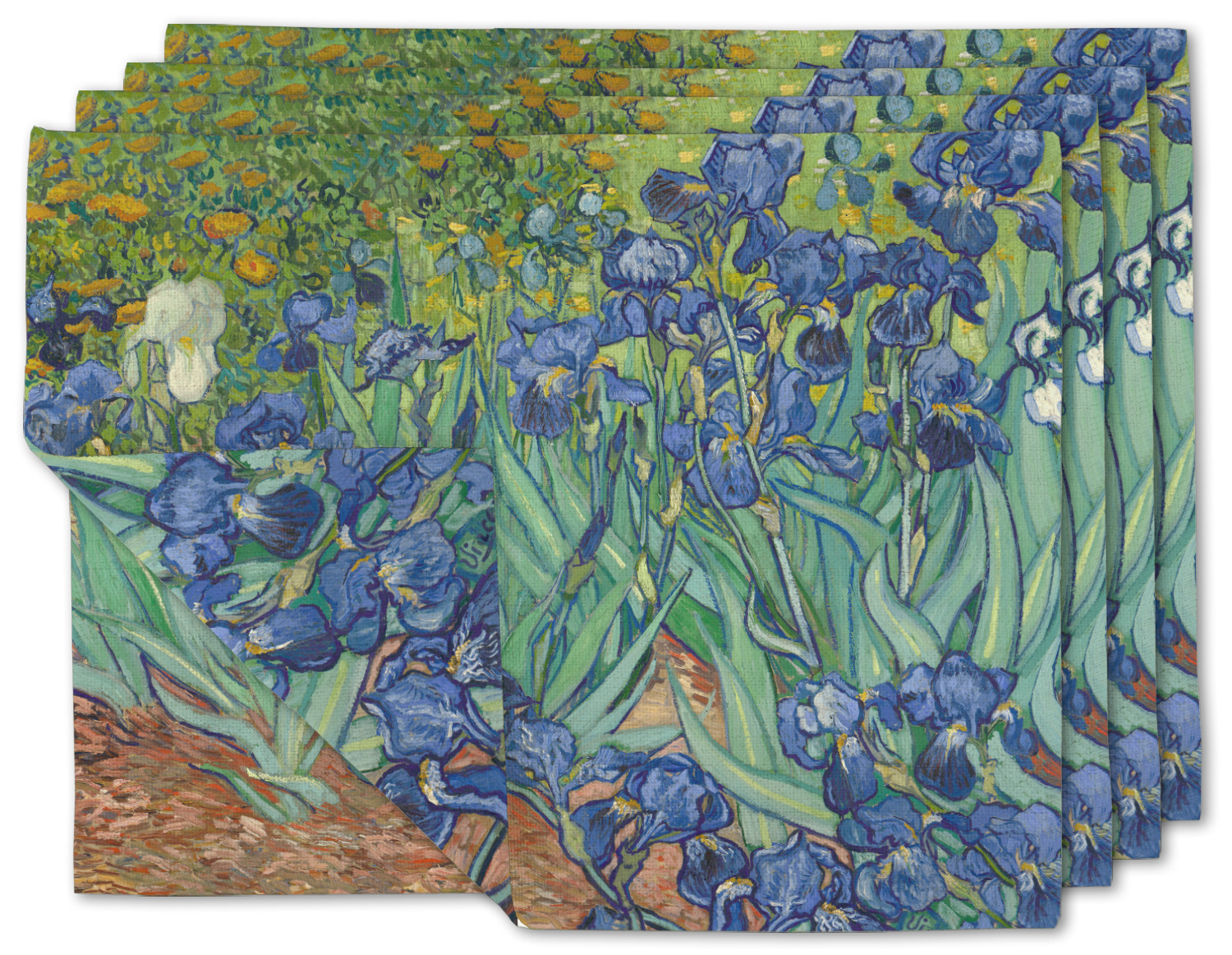 Irises is one of several paintings of irises by the Dutch artist Vincent van Gogh, and one of a series of paintings he executed at the Saint Paul-de-Mausole asylum in Saint-Remy-de-Provence, France, in the last year before his death in 1890. Van Gogh started painting Irises within a week of entering the asylum, in May 1889, working from nature in the hospital garden. There is a lack of the high tension which is seen in his later works. He called painting "the lightning conductor for my illness" because he felt that he could keep himself from going insane by continuing to paint. The painting was probably influenced by Japanese ukiyo-e woodblock prints like many of his works and those by other artists of the time. The similarities occur with strong outlines, unusual angles, including close-up views, and also flattish local colour (not modelled according to the fall of light).(Source: Wikipedia)
