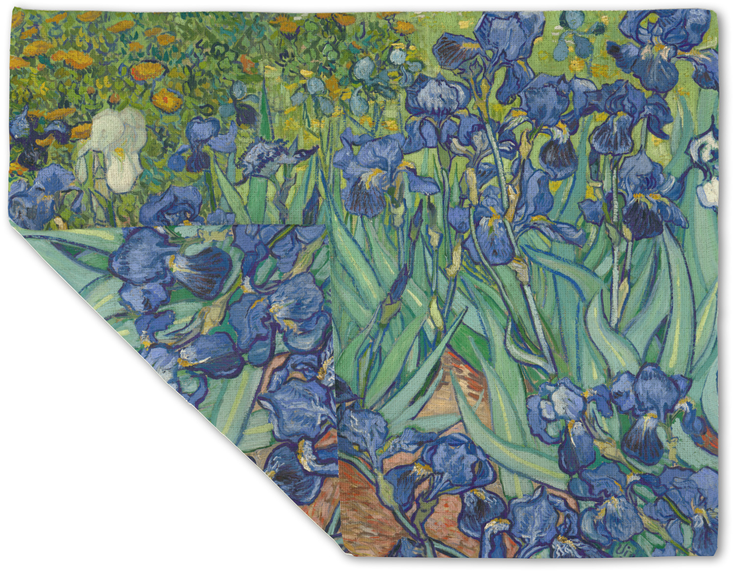 Irises is one of several paintings of irises by the Dutch artist Vincent van Gogh, and one of a series of paintings he executed at the Saint Paul-de-Mausole asylum in Saint-Remy-de-Provence, France, in the last year before his death in 1890. Van Gogh started painting Irises within a week of entering the asylum, in May 1889, working from nature in the hospital garden. There is a lack of the high tension which is seen in his later works. He called painting "the lightning conductor for my illness" because he felt that he could keep himself from going insane by continuing to paint. The painting was probably influenced by Japanese ukiyo-e woodblock prints like many of his works and those by other artists of the time. The similarities occur with strong outlines, unusual angles, including close-up views, and also flattish local colour (not modelled according to the fall of light).(Source: Wikipedia)