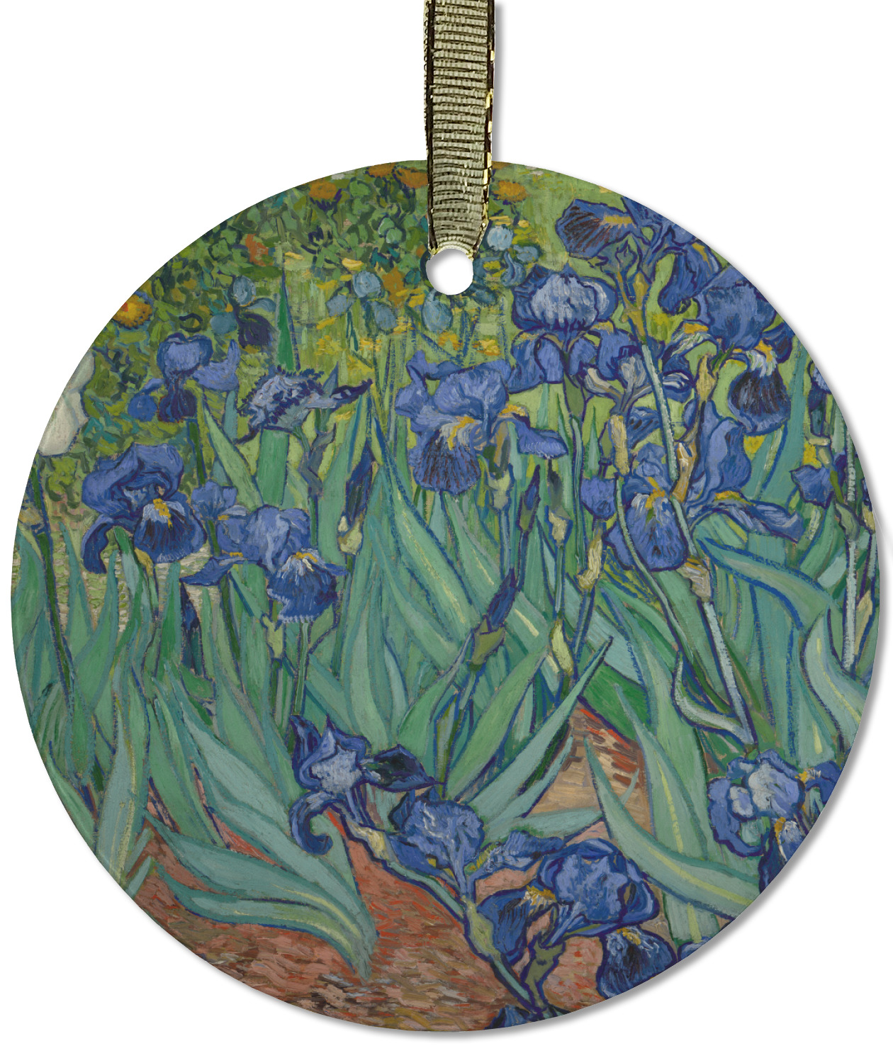 Irises is one of several paintings of irises by the Dutch artist Vincent van Gogh, and one of a series of paintings he executed at the Saint Paul-de-Mausole asylum in Saint-Remy-de-Provence, France, in the last year before his death in 1890. Van Gogh started painting Irises within a week of entering the asylum, in May 1889, working from nature in the hospital garden. There is a lack of the high tension which is seen in his later works. He called painting "the lightning conductor for my illness" because he felt that he could keep himself from going insane by continuing to paint. The painting was probably influenced by Japanese ukiyo-e woodblock prints like many of his works and those by other artists of the time. The similarities occur with strong outlines, unusual angles, including close-up views, and also flattish local colour (not modelled according to the fall of light).(Source: Wikipedia)