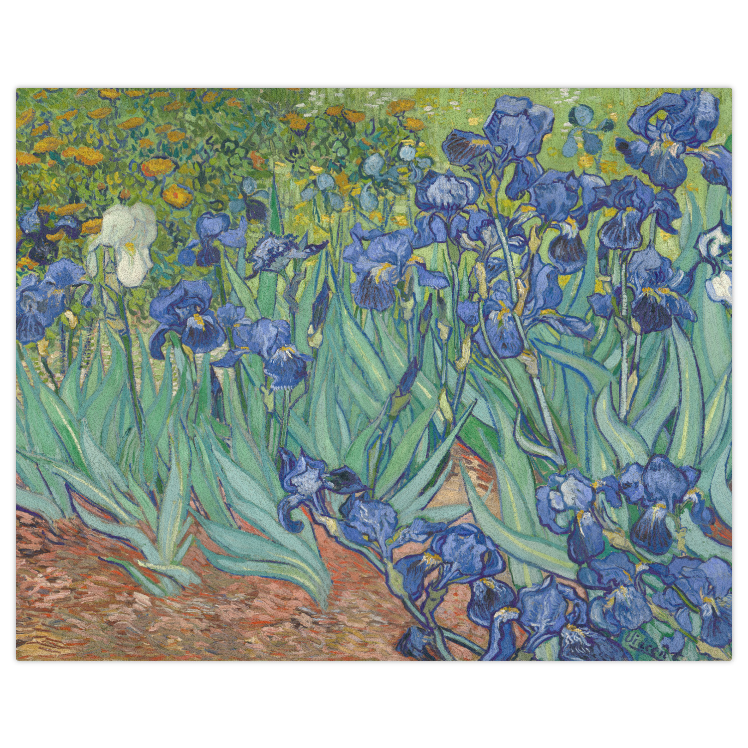 Irises is one of several paintings of irises by the Dutch artist Vincent van Gogh, and one of a series of paintings he executed at the Saint Paul-de-Mausole asylum in Saint-Remy-de-Provence, France, in the last year before his death in 1890. Van Gogh started painting Irises within a week of entering the asylum, in May 1889, working from nature in the hospital garden. There is a lack of the high tension which is seen in his later works. He called painting "the lightning conductor for my illness" because he felt that he could keep himself from going insane by continuing to paint. The painting was probably influenced by Japanese ukiyo-e woodblock prints like many of his works and those by other artists of the time. The similarities occur with strong outlines, unusual angles, including close-up views, and also flattish local colour (not modelled according to the fall of light).(Source: Wikipedia)