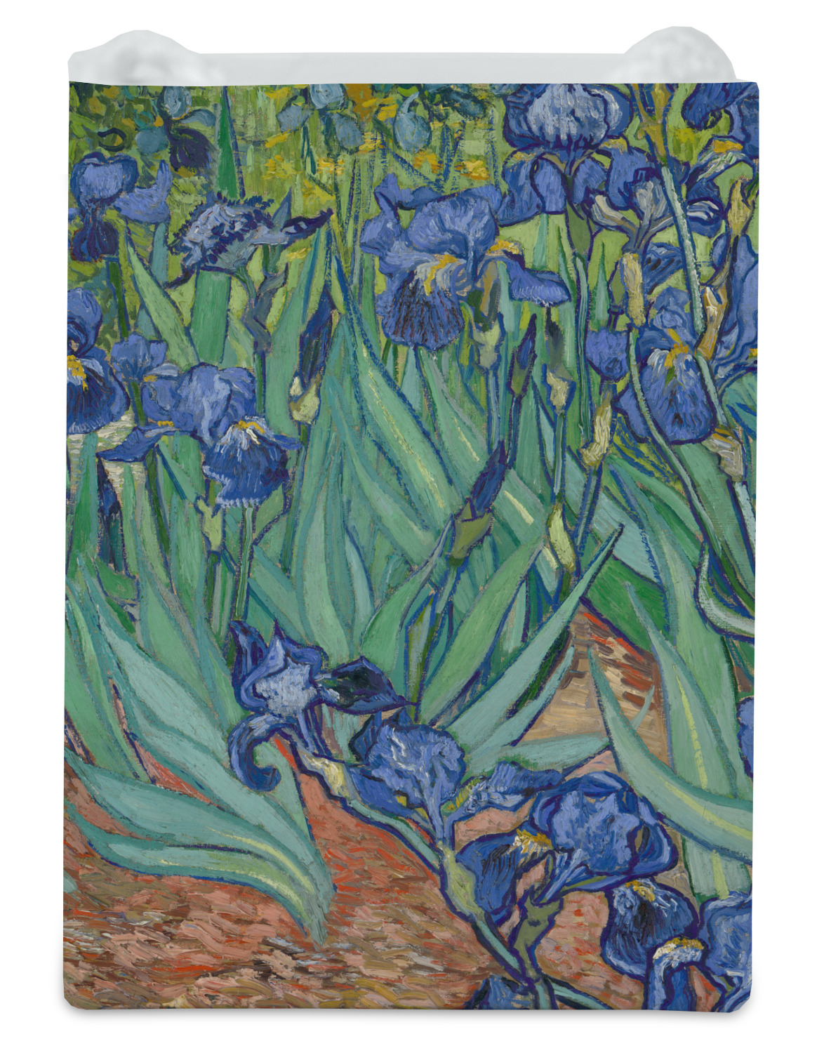 Irises is one of several paintings of irises by the Dutch artist Vincent van Gogh, and one of a series of paintings he executed at the Saint Paul-de-Mausole asylum in Saint-Remy-de-Provence, France, in the last year before his death in 1890. Van Gogh started painting Irises within a week of entering the asylum, in May 1889, working from nature in the hospital garden. There is a lack of the high tension which is seen in his later works. He called painting "the lightning conductor for my illness" because he felt that he could keep himself from going insane by continuing to paint. The painting was probably influenced by Japanese ukiyo-e woodblock prints like many of his works and those by other artists of the time. The similarities occur with strong outlines, unusual angles, including close-up views, and also flattish local colour (not modelled according to the fall of light).(Source: Wikipedia)