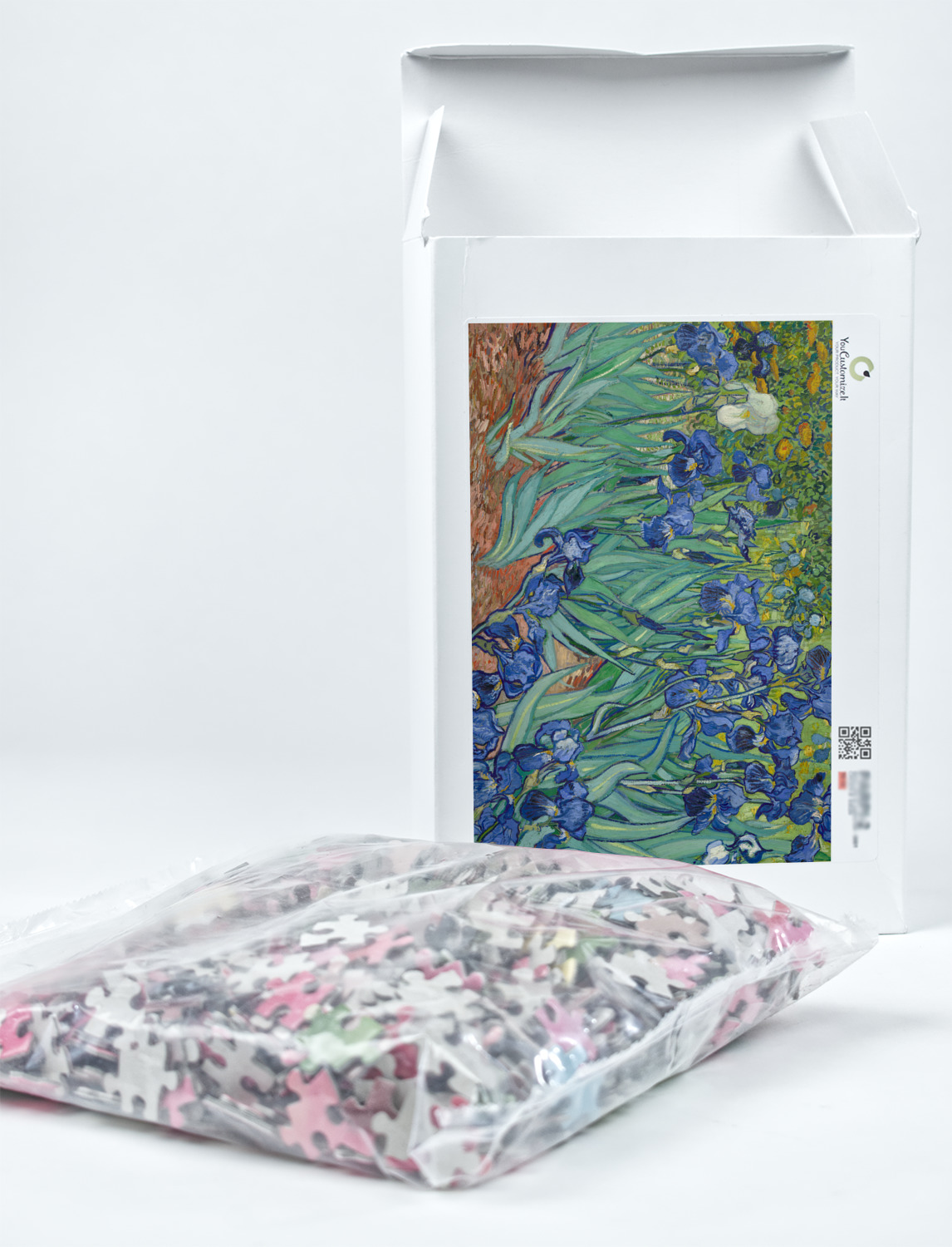 We print our puzzles on thick white chipboard in vibrant colors, then laminate the chipboard and die cut your puzzle. Your jigsaw puzzle is shipped to you in a box with the image of the puzzle on the box.