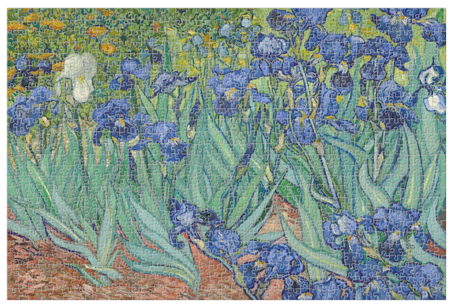 Irises is one of several paintings of irises by the Dutch artist Vincent van Gogh, and one of a series of paintings he executed at the Saint Paul-de-Mausole asylum in Saint-Remy-de-Provence, France, in the last year before his death in 1890. Van Gogh started painting Irises within a week of entering the asylum, in May 1889, working from nature in the hospital garden. There is a lack of the high tension which is seen in his later works. He called painting "the lightning conductor for my illness" because he felt that he could keep himself from going insane by continuing to paint. The painting was probably influenced by Japanese ukiyo-e woodblock prints like many of his works and those by other artists of the time. The similarities occur with strong outlines, unusual angles, including close-up views, and also flattish local colour (not modelled according to the fall of light).(Source: Wikipedia)