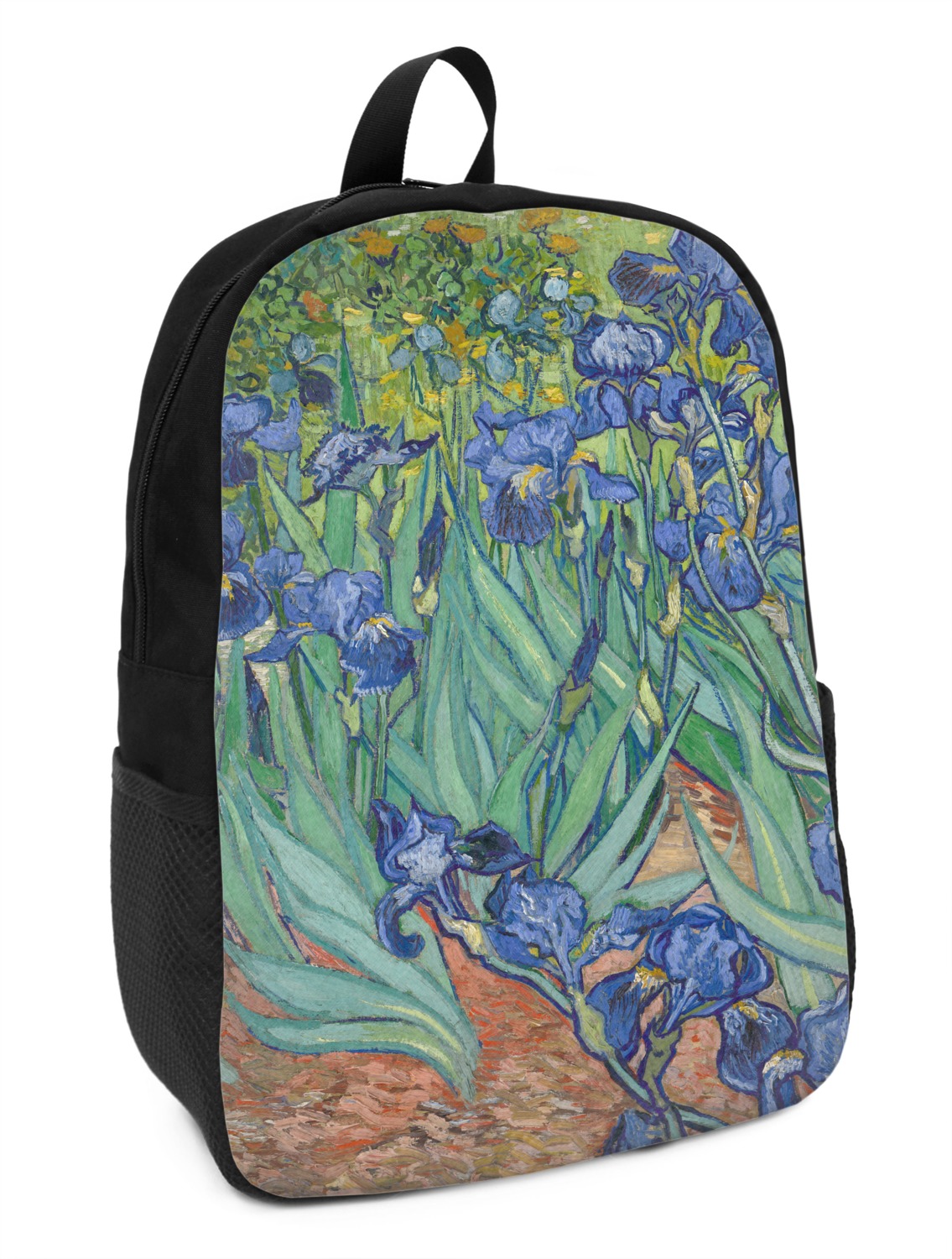 Irises is one of several paintings of irises by the Dutch artist Vincent van Gogh, and one of a series of paintings he executed at the Saint Paul-de-Mausole asylum in Saint-Remy-de-Provence, France, in the last year before his death in 1890. Van Gogh started painting Irises within a week of entering the asylum, in May 1889, working from nature in the hospital garden. There is a lack of the high tension which is seen in his later works. He called painting "the lightning conductor for my illness" because he felt that he could keep himself from going insane by continuing to paint. The painting was probably influenced by Japanese ukiyo-e woodblock prints like many of his works and those by other artists of the time. The similarities occur with strong outlines, unusual angles, including close-up views, and also flattish local colour (not modelled according to the fall of light).(Source: Wikipedia)