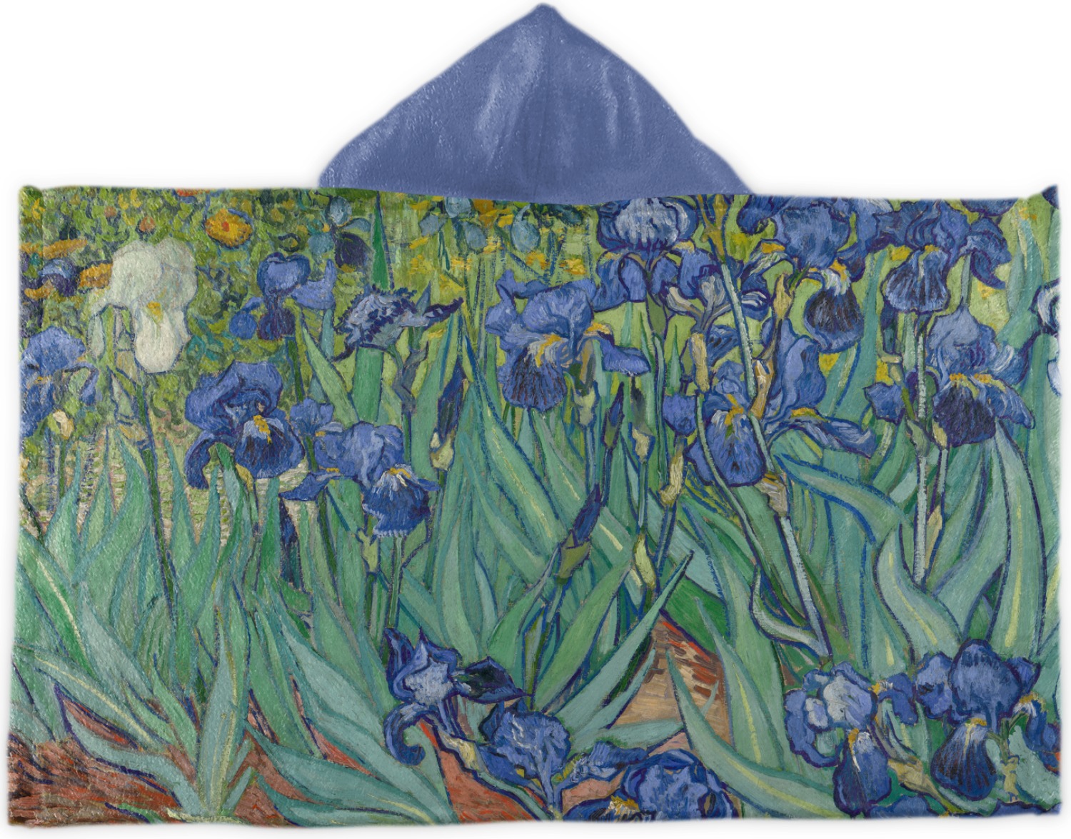 Now you can enjoy Irises on a daily basis. Well not all of it! To put this rectangular painting (roughly 4x3) on products, we use as much of the painting as we can on each product. So for a square product like the shower curtain - we use a 3x3 rectangle - which cuts off a little of the sides - but is still very much Irises For other products such as the wristlet (a wide 4x1 rectangle) - you get a small slice of the painting.