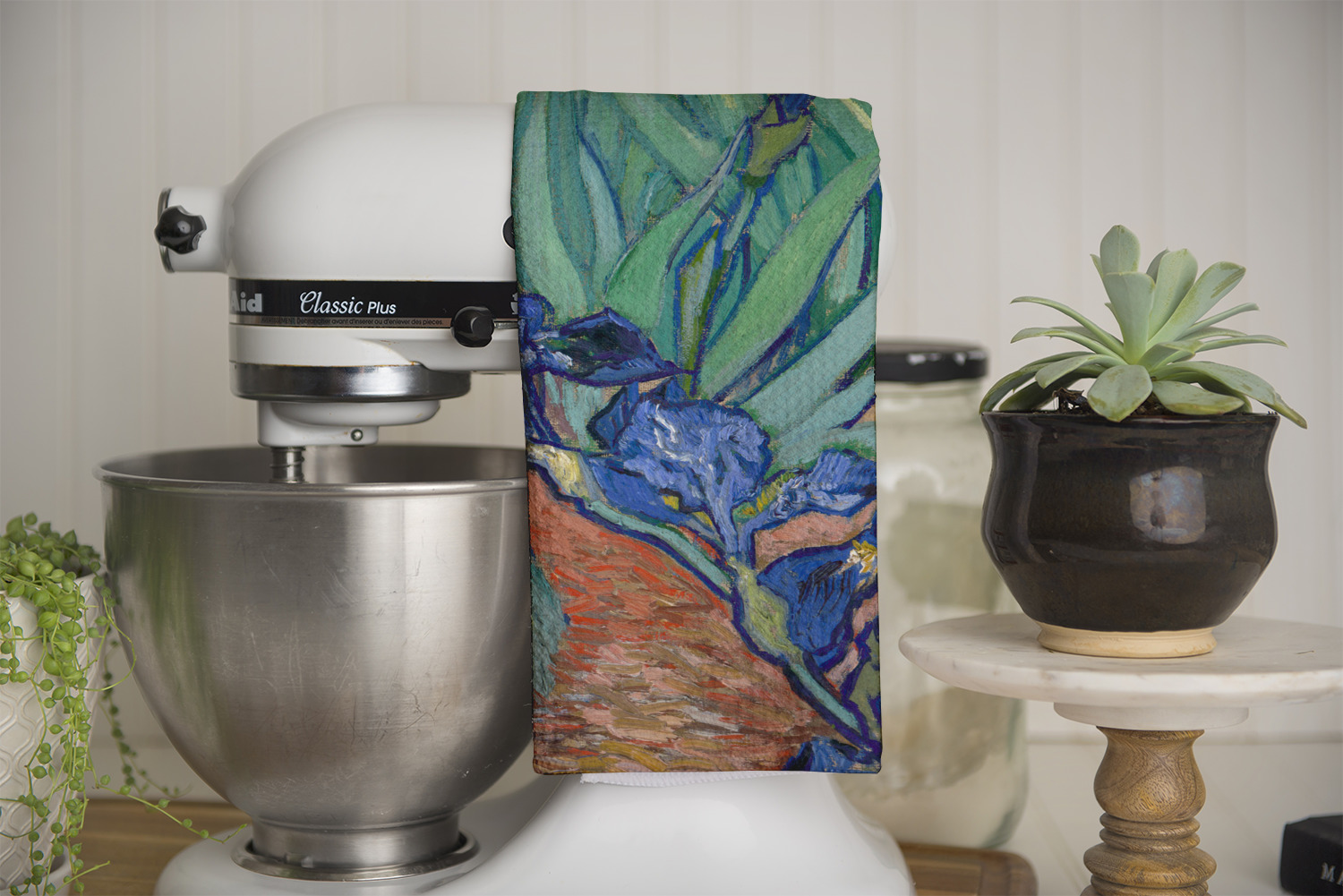 Now you can enjoy Irises on a daily basis. Well not all of it! To put this rectangular painting (roughly 4x3) on products, we use as much of the painting as we can on each product. So for a square product like the shower curtain - we use a 3x3 rectangle - which cuts off a little of the sides - but is still very much Irises For other products such as the wristlet (a wide 4x1 rectangle) - you get a small slice of the painting.