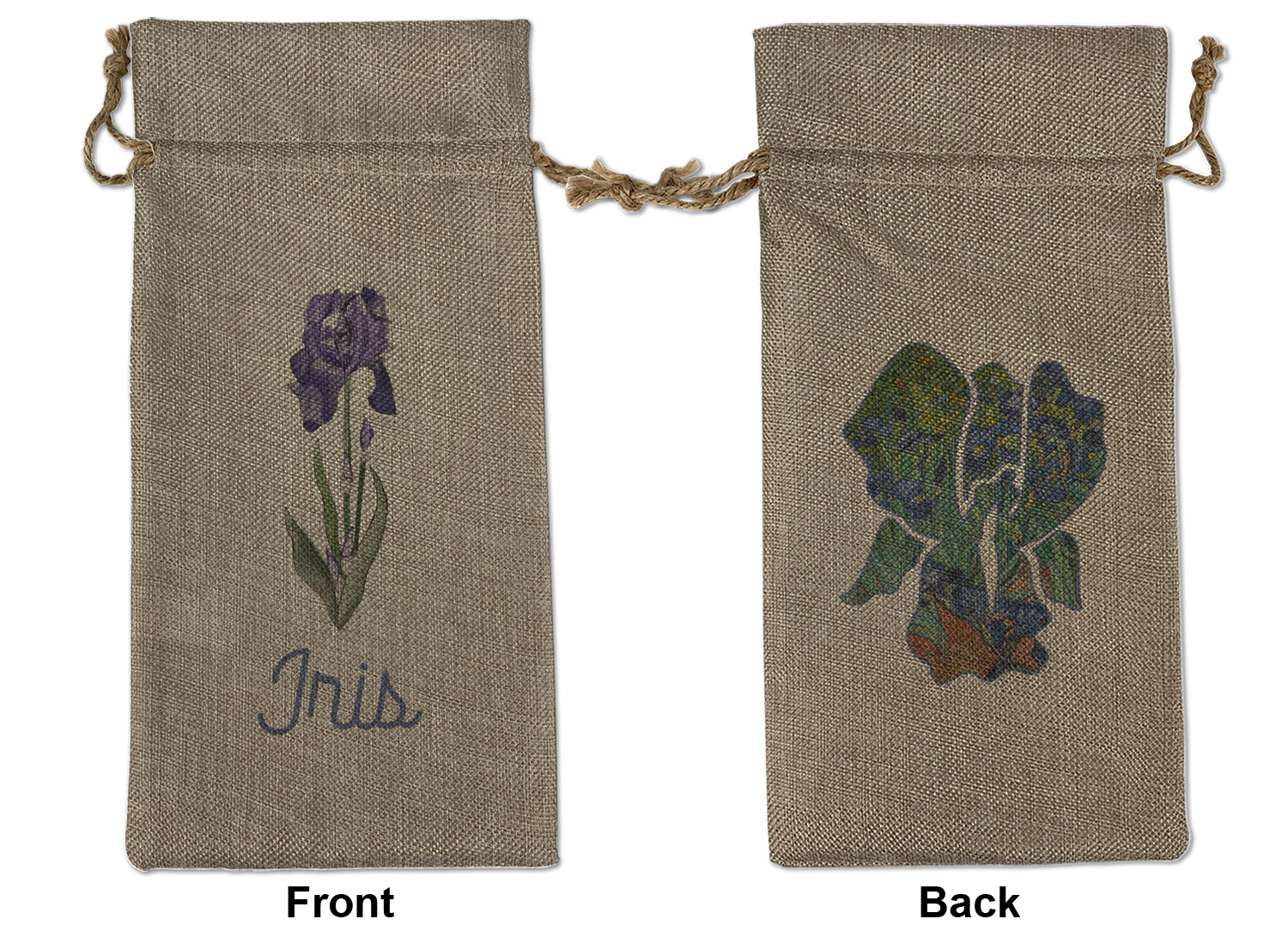 We sell our Burlap Gift Bags in 3 variant sized bags. Made with burlap polyester, each personalized bag can be secured with a twine drawstring pull. Your custom design is available to print on one side or both sides - completely up to you! The sizes of the bags measure approximately 4.5" x 6.5" for the smallest size, 6.5" x 8.0" for the medium size, and 6.5" x 13.5" for the large-sized bag.