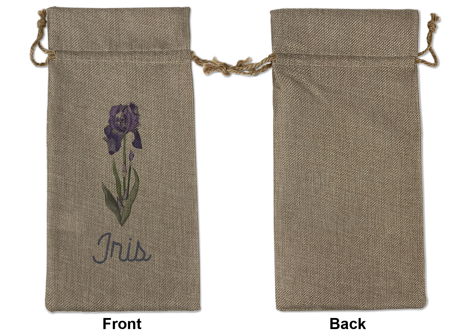 We sell our Burlap Gift Bags in 3 variant sized bags. Made with burlap polyester, each personalized bag can be secured with a twine drawstring pull. Your custom design is available to print on one side or both sides - completely up to you! The sizes of the bags measure approximately 4.5" x 6.5" for the smallest size, 6.5" x 8.0" for the medium size, and 6.5" x 13.5" for the large-sized bag.