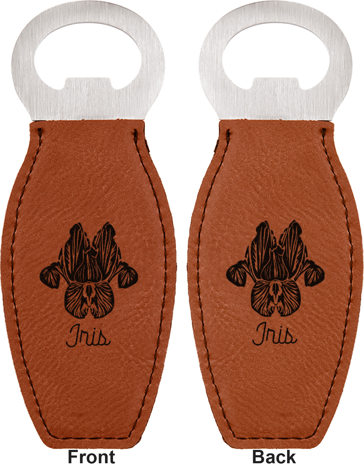Built from stainless steel, these custom bottle openers are wrapped in a cognac-colored leatherette. Sharp, black stitching lines the edges for extra durability and a finished touch. Your personalization is laser-engraved onto the surface of this leatherette, leaving behind a crisp, black coloration. At 4.6 by 1.8 inches, this beer bottle opener gives you much of leverage when trying to open a stubborn bottle. On the opposite end of the opener, you'll find a magnet that you can use to display your new, unique bottle opener!