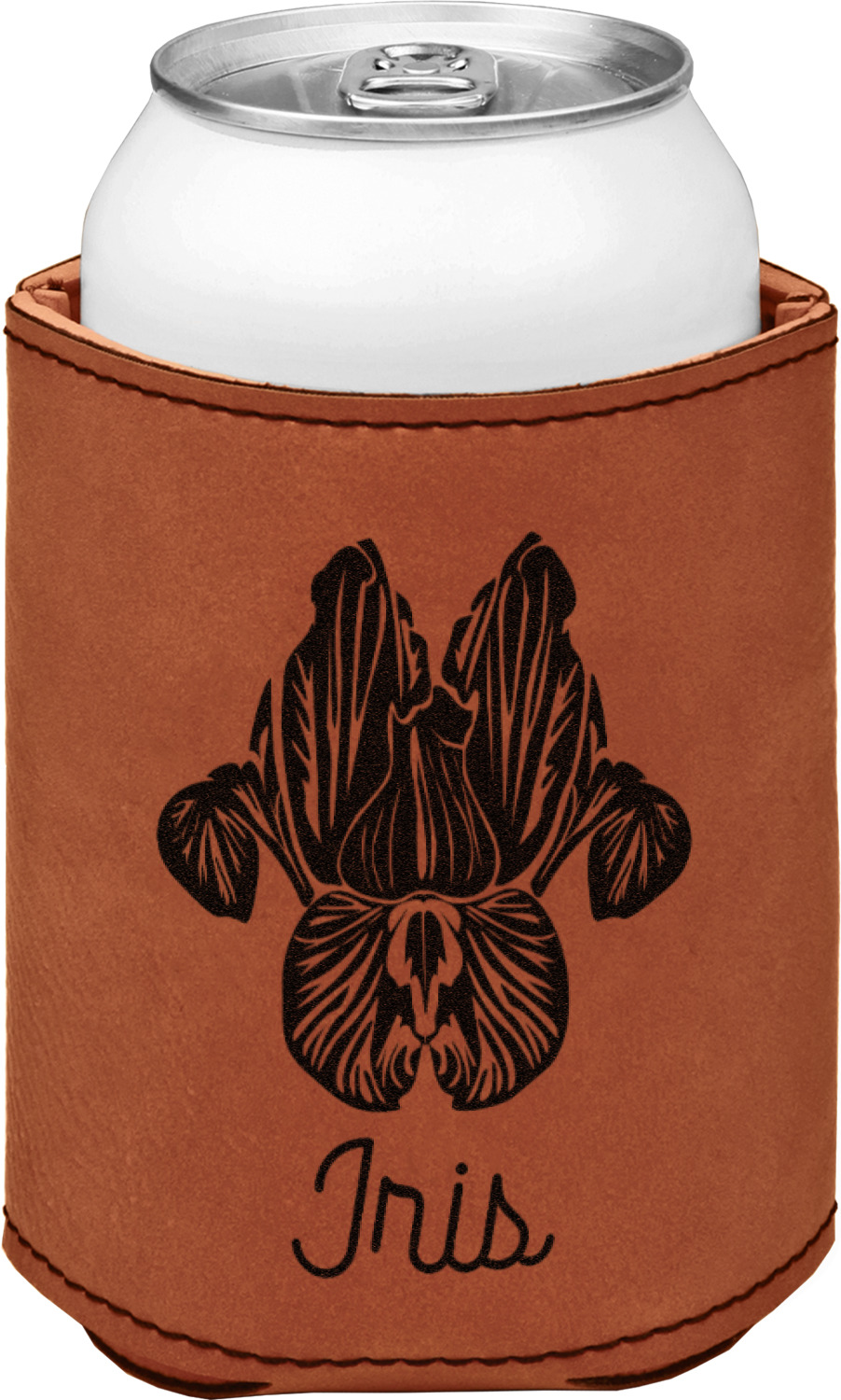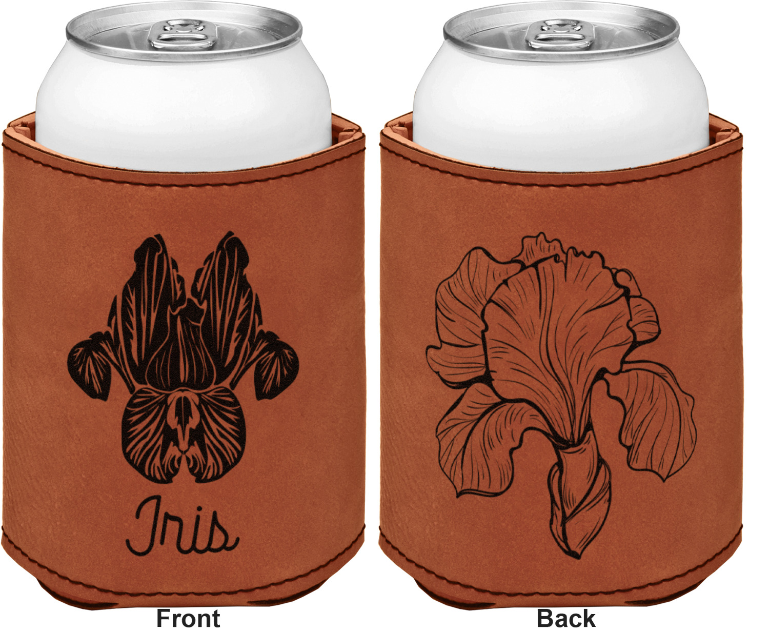 This can sleeve is made from a cognac-brown leatherette and stitched with a sturdy, black thread. A slim padding lines the inside of your can sleeve to allow for a better fit once your drink is inserted. The sleeve itself measures at 4 by 4.5 inches, allowing this custom can sleeve to accommodate most canned drinks. Your personalized design can be engraved on the front and back, or solely the front. When laser-engraved, your design appears as a black coloration which contrasts the leatherette nicely.