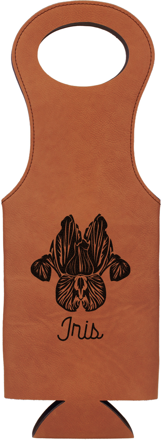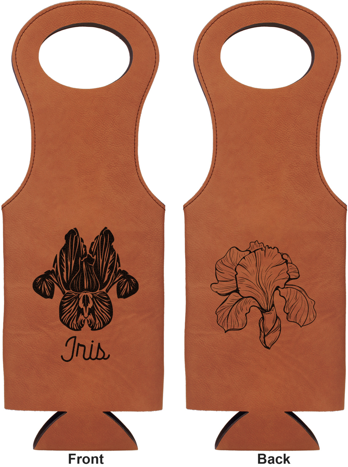 This wine carrier is made from a stunning leatherette, in a cognac-brown color. Strong, black stitching lines the sides of your wine bottle bag and provides extra durability. The interior is lined with a padded, black material to allow for a snug fit once your bottle is placed inside. At the top of this wine gift bag, you'll find two oval shaped handles that elegantly complements the rest of the bag's style. We provide you with the option of laser-engraving the front, or the front and back of your new personalized wine bag!