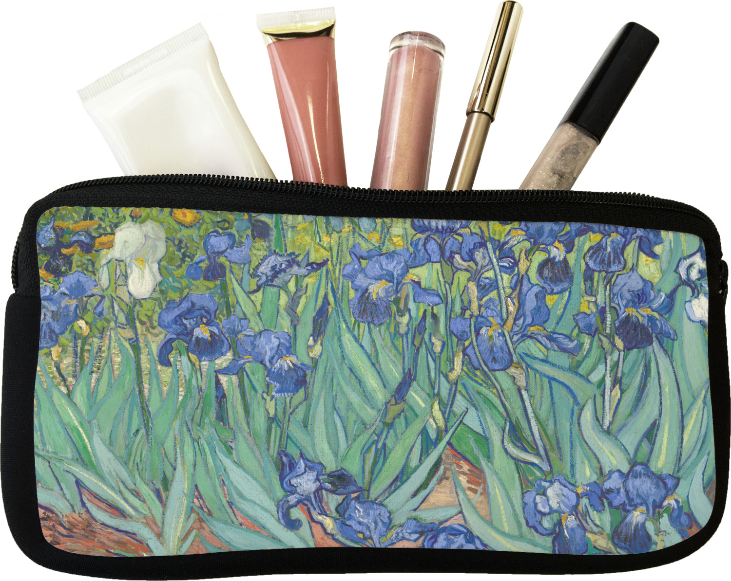 Now you can enjoy Irises on a daily basis. Well not all of it! To put this rectangular painting (roughly 4x3) on products, we use as much of the painting as we can on each product. So for a square product like the shower curtain - we use a 3x3 rectangle - which cuts off a little of the sides - but is still very much Irises For other products such as the wristlet (a wide 4x1 rectangle) - you get a small slice of the painting.