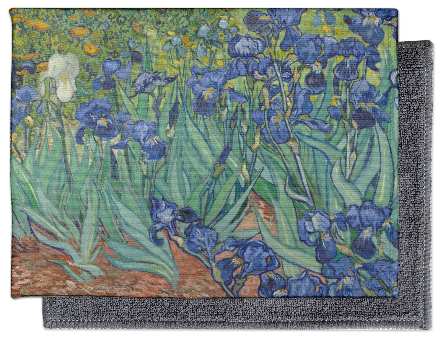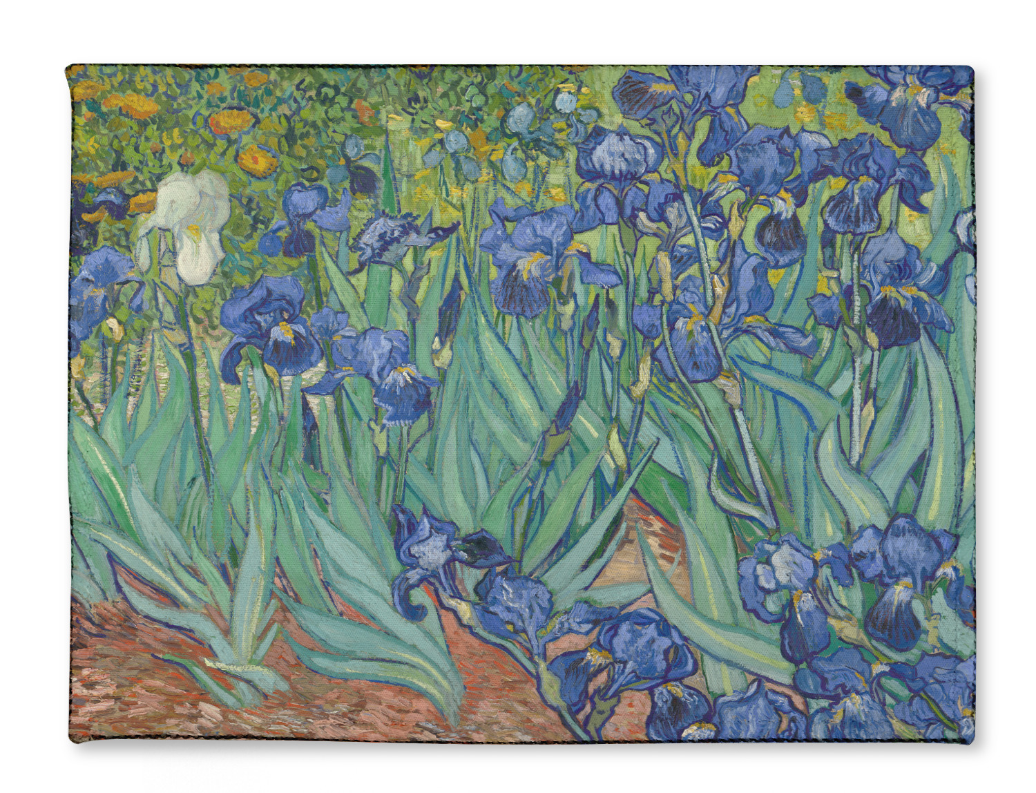 Irises is one of several paintings of irises by the Dutch artist Vincent van Gogh, and one of a series of paintings he executed at the Saint Paul-de-Mausole asylum in Saint-Remy-de-Provence, France, in the last year before his death in 1890. Van Gogh started painting Irises within a week of entering the asylum, in May 1889, working from nature in the hospital garden. There is a lack of the high tension which is seen in his later works. He called painting "the lightning conductor for my illness" because he felt that he could keep himself from going insane by continuing to paint. The painting was probably influenced by Japanese ukiyo-e woodblock prints like many of his works and those by other artists of the time. The similarities occur with strong outlines, unusual angles, including close-up views, and also flattish local colour (not modelled according to the fall of light).(Source: Wikipedia)