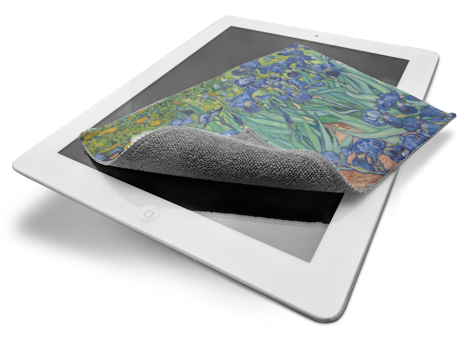 Now you can enjoy Irises on a daily basis. Well not all of it! To put this rectangular painting (roughly 4x3) on products, we use as much of the painting as we can on each product. So for a square product like the shower curtain - we use a 3x3 rectangle - which cuts off a little of the sides - but is still very much Irises For other products such as the wristlet (a wide 4x1 rectangle) - you get a small slice of the painting.
