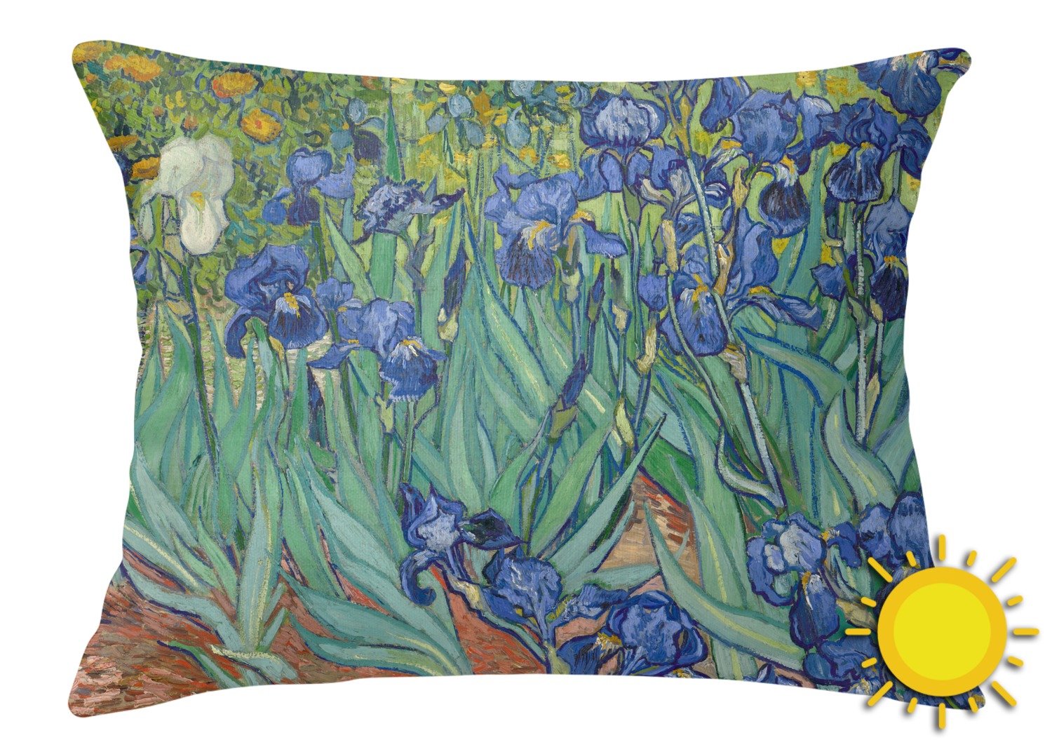 Irises is one of several paintings of irises by the Dutch artist Vincent van Gogh, and one of a series of paintings he executed at the Saint Paul-de-Mausole asylum in Saint-Remy-de-Provence, France, in the last year before his death in 1890. Van Gogh started painting Irises within a week of entering the asylum, in May 1889, working from nature in the hospital garden. There is a lack of the high tension which is seen in his later works. He called painting "the lightning conductor for my illness" because he felt that he could keep himself from going insane by continuing to paint. The painting was probably influenced by Japanese ukiyo-e woodblock prints like many of his works and those by other artists of the time. The similarities occur with strong outlines, unusual angles, including close-up views, and also flattish local colour (not modelled according to the fall of light).(Source: Wikipedia)