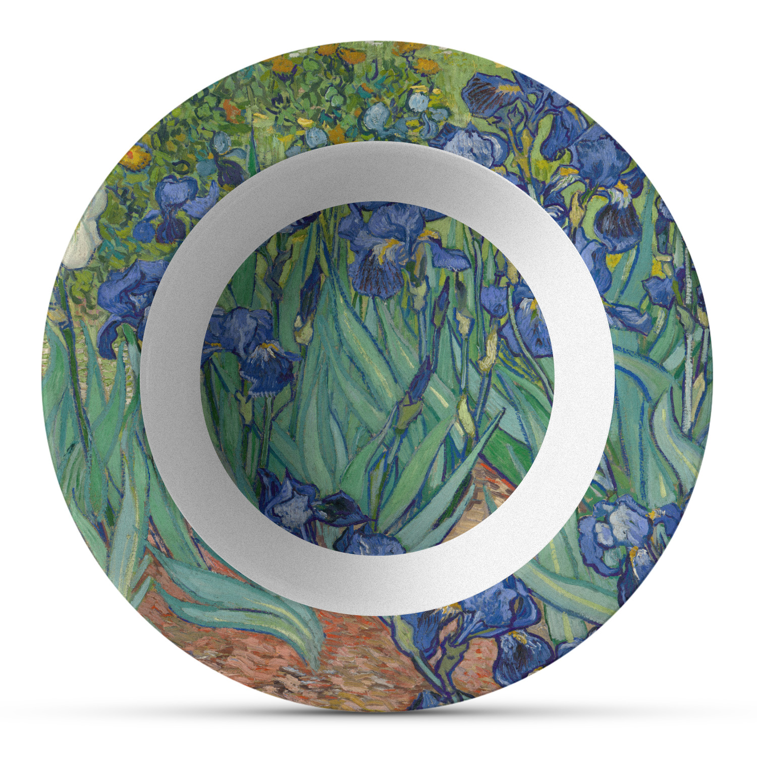 Irises is one of several paintings of irises by the Dutch artist Vincent van Gogh, and one of a series of paintings he executed at the Saint Paul-de-Mausole asylum in Saint-Remy-de-Provence, France, in the last year before his death in 1890. Van Gogh started painting Irises within a week of entering the asylum, in May 1889, working from nature in the hospital garden. There is a lack of the high tension which is seen in his later works. He called painting "the lightning conductor for my illness" because he felt that he could keep himself from going insane by continuing to paint. The painting was probably influenced by Japanese ukiyo-e woodblock prints like many of his works and those by other artists of the time. The similarities occur with strong outlines, unusual angles, including close-up views, and also flattish local colour (not modelled according to the fall of light).(Source: Wikipedia)