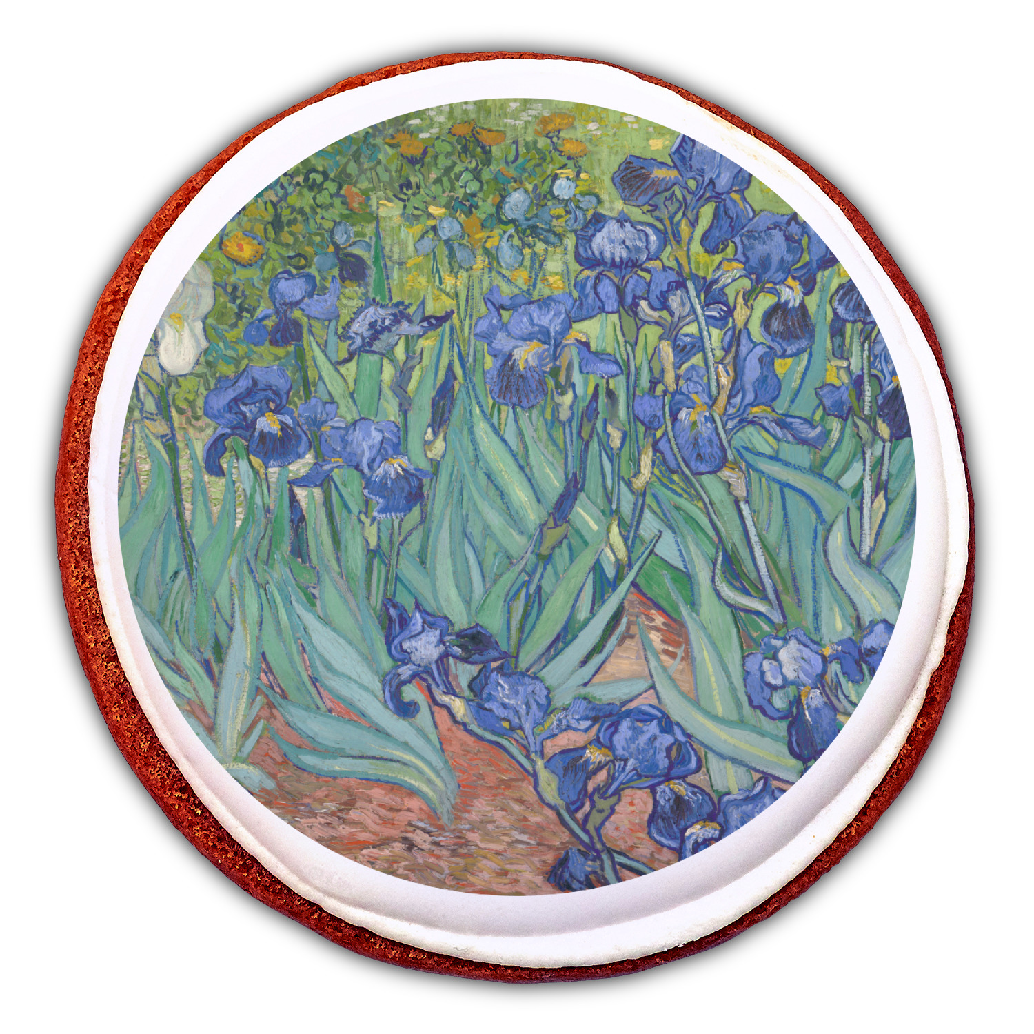 Irises is one of several paintings of irises by the Dutch artist Vincent van Gogh, and one of a series of paintings he executed at the Saint Paul-de-Mausole asylum in Saint-Remy-de-Provence, France, in the last year before his death in 1890. Van Gogh started painting Irises within a week of entering the asylum, in May 1889, working from nature in the hospital garden. There is a lack of the high tension which is seen in his later works. He called painting "the lightning conductor for my illness" because he felt that he could keep himself from going insane by continuing to paint. The painting was probably influenced by Japanese ukiyo-e woodblock prints like many of his works and those by other artists of the time. The similarities occur with strong outlines, unusual angles, including close-up views, and also flattish local colour (not modelled according to the fall of light).(Source: Wikipedia)