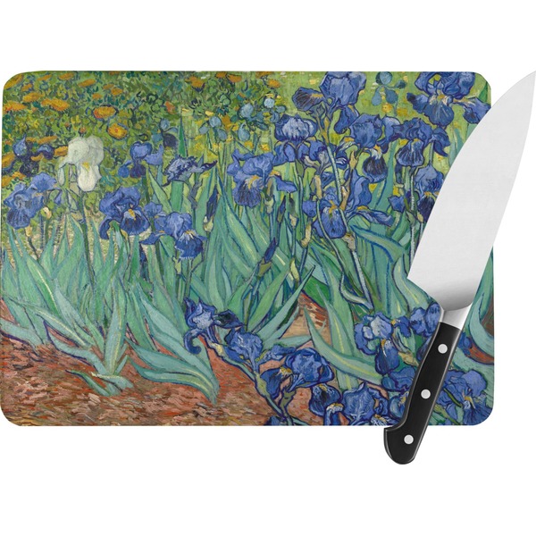 Irises is one of several paintings of irises by the Dutch artist Vincent van Gogh, and one of a series of paintings he executed at the Saint Paul-de-Mausole asylum in Saint-Remy-de-Provence, France, in the last year before his death in 1890. Van Gogh started painting Irises within a week of entering the asylum, in May 1889, working from nature in the hospital garden. There is a lack of the high tension which is seen in his later works. He called painting "the lightning conductor for my illness" because he felt that he could keep himself from going insane by continuing to paint. The painting was probably influenced by Japanese ukiyo-e woodblock prints like many of his works and those by other artists of the time. The similarities occur with strong outlines, unusual angles, including close-up views, and also flattish local colour (not modelled according to the fall of light).(Source: Wikipedia)