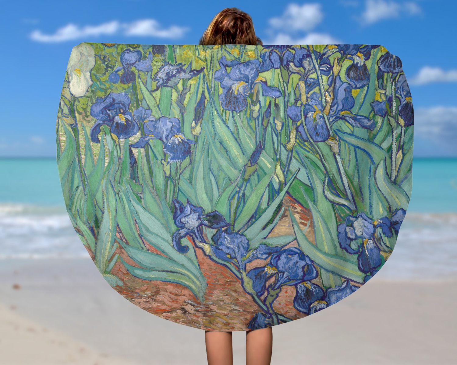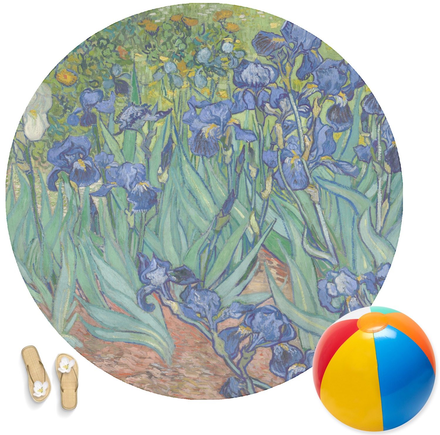Irises is one of several paintings of irises by the Dutch artist Vincent van Gogh, and one of a series of paintings he executed at the Saint Paul-de-Mausole asylum in Saint-Remy-de-Provence, France, in the last year before his death in 1890. Van Gogh started painting Irises within a week of entering the asylum, in May 1889, working from nature in the hospital garden. There is a lack of the high tension which is seen in his later works. He called painting "the lightning conductor for my illness" because he felt that he could keep himself from going insane by continuing to paint. The painting was probably influenced by Japanese ukiyo-e woodblock prints like many of his works and those by other artists of the time. The similarities occur with strong outlines, unusual angles, including close-up views, and also flattish local colour (not modelled according to the fall of light).(Source: Wikipedia)