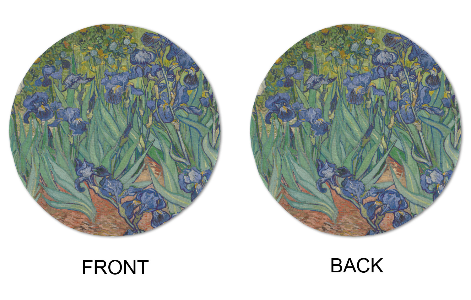 Irises is one of several paintings of irises by the Dutch artist Vincent van Gogh, and one of a series of paintings he executed at the Saint Paul-de-Mausole asylum in Saint-Remy-de-Provence, France, in the last year before his death in 1890. Van Gogh started painting Irises within a week of entering the asylum, in May 1889, working from nature in the hospital garden. There is a lack of the high tension which is seen in his later works. He called painting "the lightning conductor for my illness" because he felt that he could keep himself from going insane by continuing to paint. The painting was probably influenced by Japanese ukiyo-e woodblock prints like many of his works and those by other artists of the time. The similarities occur with strong outlines, unusual angles, including close-up views, and also flattish local colour (not modelled according to the fall of light).(Source: Wikipedia)