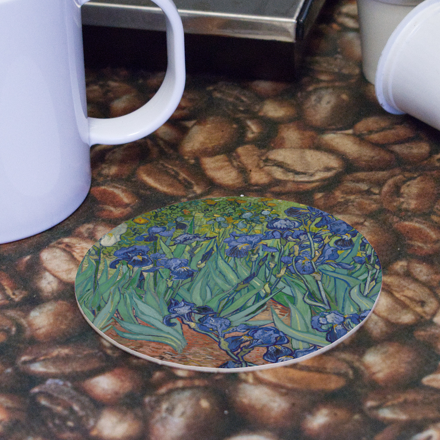 Irises is one of several paintings of irises by the Dutch artist Vincent van Gogh, and one of a series of paintings he executed at the Saint Paul-de-Mausole asylum in Saint-Remy-de-Provence, France, in the last year before his death in 1890. Van Gogh started painting Irises within a week of entering the asylum, in May 1889, working from nature in the hospital garden. There is a lack of the high tension which is seen in his later works. He called painting "the lightning conductor for my illness" because he felt that he could keep himself from going insane by continuing to paint. The painting was probably influenced by Japanese ukiyo-e woodblock prints like many of his works and those by other artists of the time. The similarities occur with strong outlines, unusual angles, including close-up views, and also flattish local colour (not modelled according to the fall of light).(Source: Wikipedia)