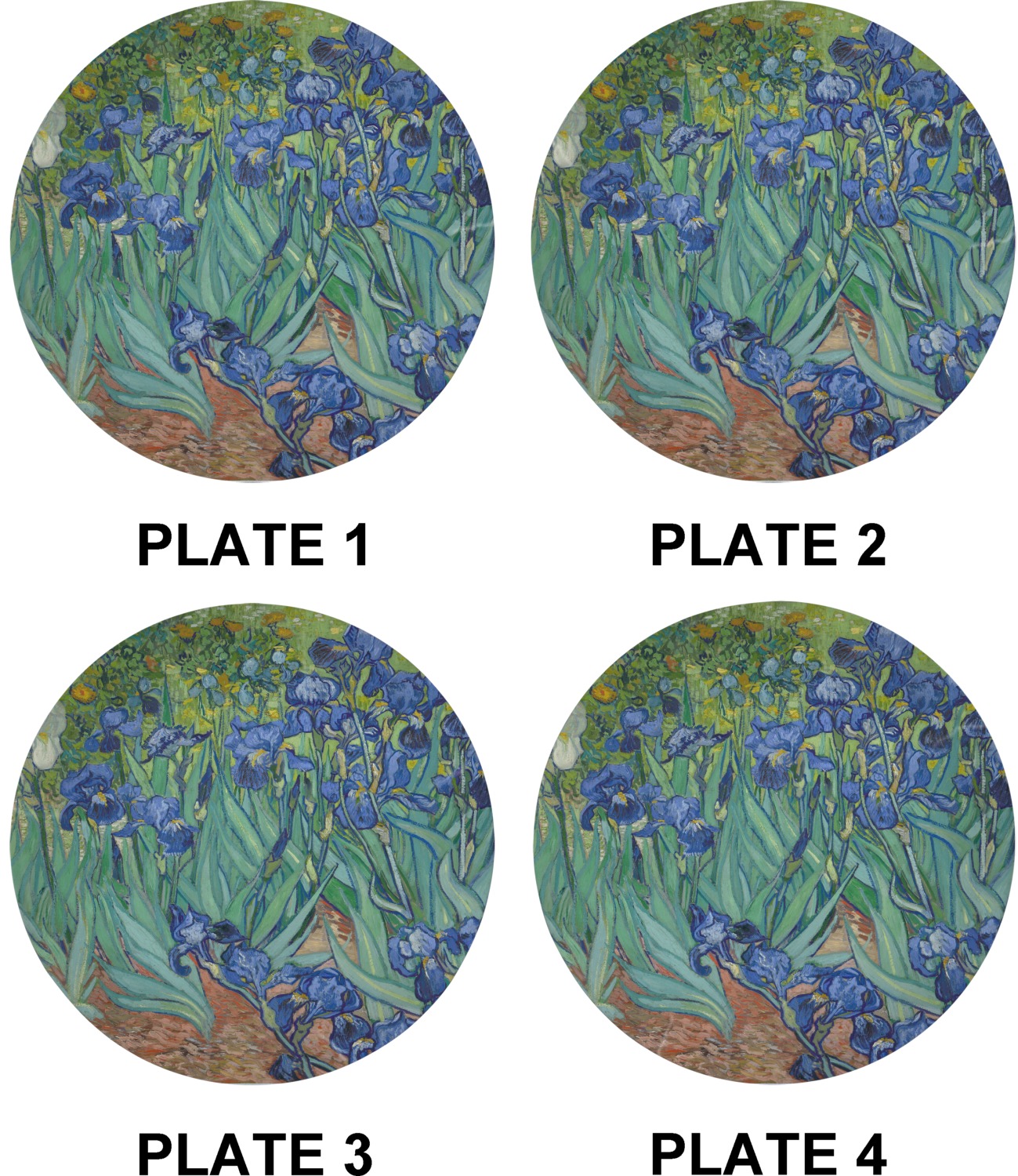 Irises is one of several paintings of irises by the Dutch artist Vincent van Gogh, and one of a series of paintings he executed at the Saint Paul-de-Mausole asylum in Saint-Remy-de-Provence, France, in the last year before his death in 1890. Van Gogh started painting Irises within a week of entering the asylum, in May 1889, working from nature in the hospital garden. There is a lack of the high tension which is seen in his later works. He called painting "the lightning conductor for my illness" because he felt that he could keep himself from going insane by continuing to paint. The painting was probably influenced by Japanese ukiyo-e woodblock prints like many of his works and those by other artists of the time. The similarities occur with strong outlines, unusual angles, including close-up views, and also flattish local colour (not modelled according to the fall of light).(Source: Wikipedia)