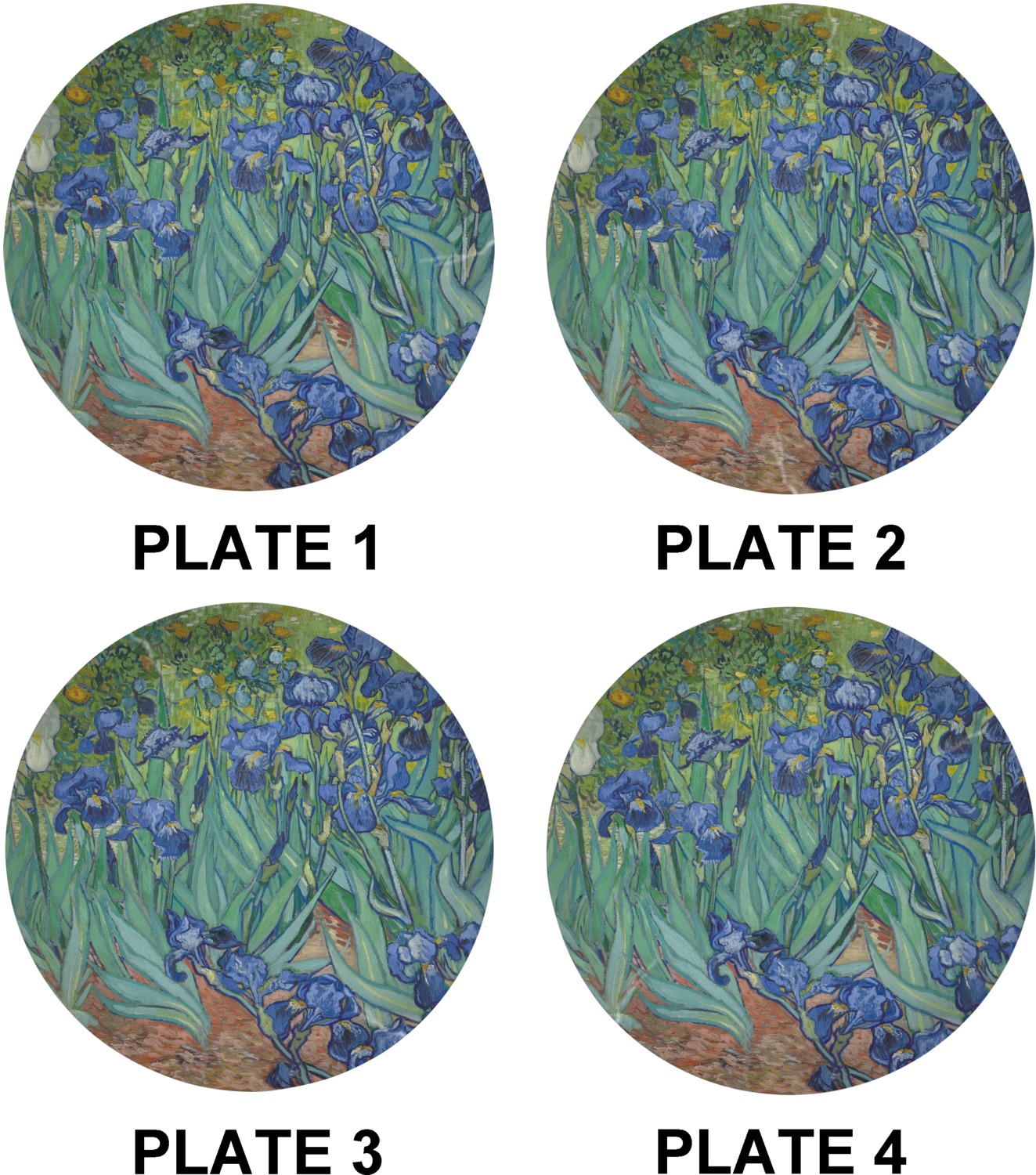 Irises is one of several paintings of irises by the Dutch artist Vincent van Gogh, and one of a series of paintings he executed at the Saint Paul-de-Mausole asylum in Saint-Remy-de-Provence, France, in the last year before his death in 1890. Van Gogh started painting Irises within a week of entering the asylum, in May 1889, working from nature in the hospital garden. There is a lack of the high tension which is seen in his later works. He called painting "the lightning conductor for my illness" because he felt that he could keep himself from going insane by continuing to paint. The painting was probably influenced by Japanese ukiyo-e woodblock prints like many of his works and those by other artists of the time. The similarities occur with strong outlines, unusual angles, including close-up views, and also flattish local colour (not modelled according to the fall of light).(Source: Wikipedia)
