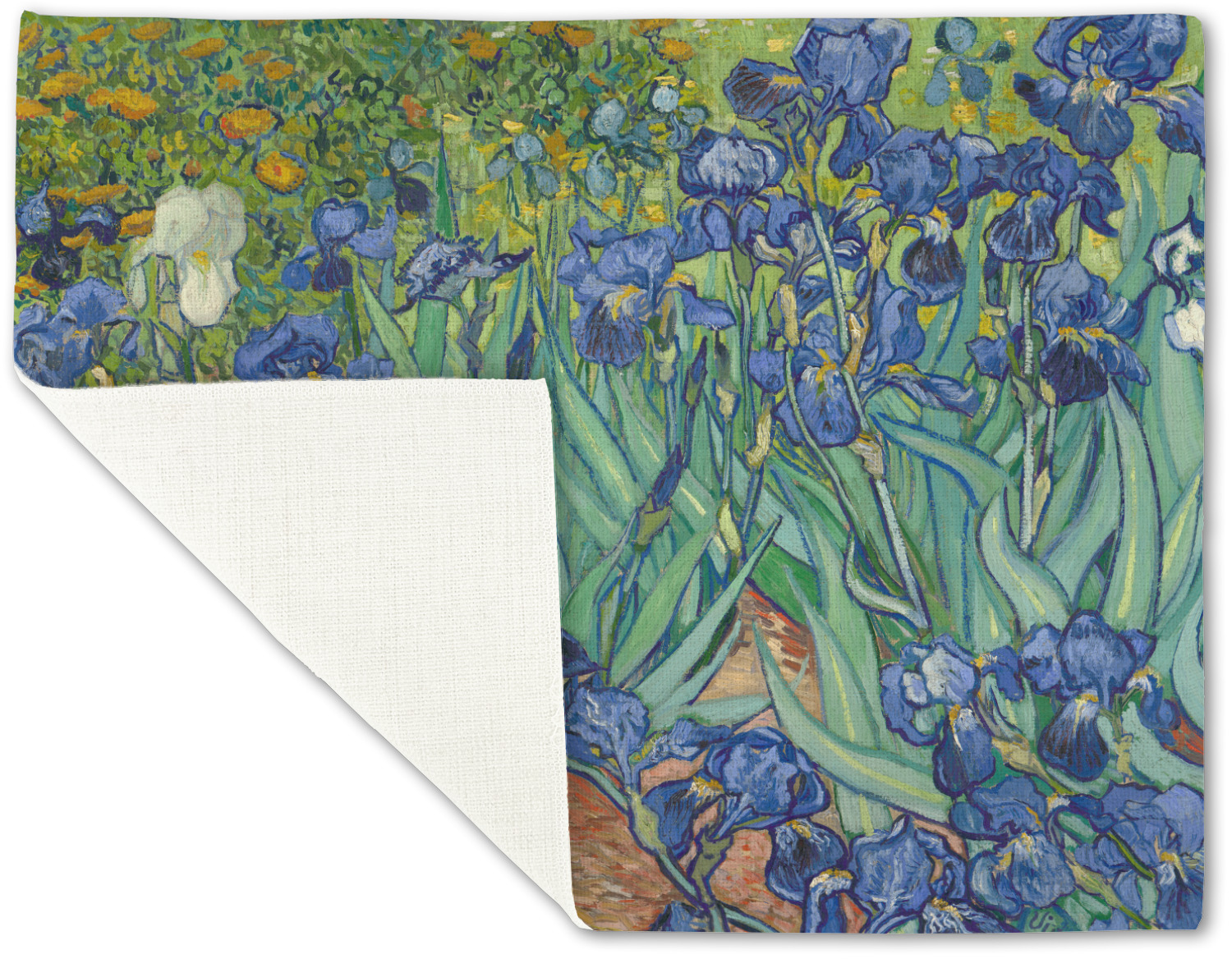 Irises is one of several paintings of irises by the Dutch artist Vincent van Gogh, and one of a series of paintings he executed at the Saint Paul-de-Mausole asylum in Saint-Remy-de-Provence, France, in the last year before his death in 1890. Van Gogh started painting Irises within a week of entering the asylum, in May 1889, working from nature in the hospital garden. There is a lack of the high tension which is seen in his later works. He called painting "the lightning conductor for my illness" because he felt that he could keep himself from going insane by continuing to paint. The painting was probably influenced by Japanese ukiyo-e woodblock prints like many of his works and those by other artists of the time. The similarities occur with strong outlines, unusual angles, including close-up views, and also flattish local colour (not modelled according to the fall of light).(Source: Wikipedia)