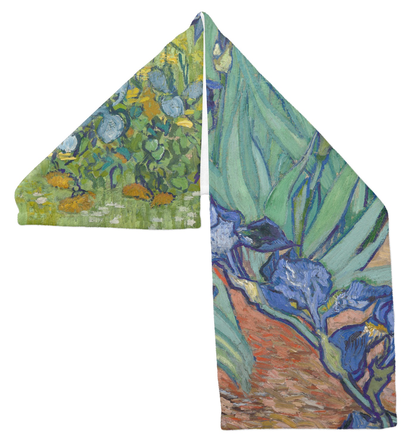 Irises is one of several paintings of irises by the Dutch artist Vincent van Gogh, and one of a series of paintings he executed at the Saint Paul-de-Mausole asylum in Saint-Remy-de-Provence, France, in the last year before his death in 1890. Van Gogh started painting Irises within a week of entering the asylum, in May 1889, working from nature in the hospital garden. There is a lack of the high tension which is seen in his later works. He called painting "the lightning conductor for my illness" because he felt that he could keep himself from going insane by continuing to paint. The painting was probably influenced by Japanese ukiyo-e woodblock prints like many of his works and those by other artists of the time. The similarities occur with strong outlines, unusual angles, including close-up views, and also flattish local colour (not modelled according to the fall of light).(Source: Wikipedia)