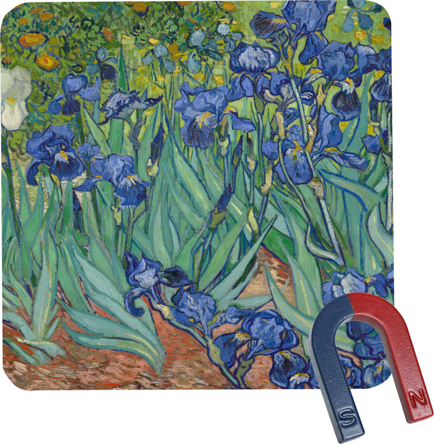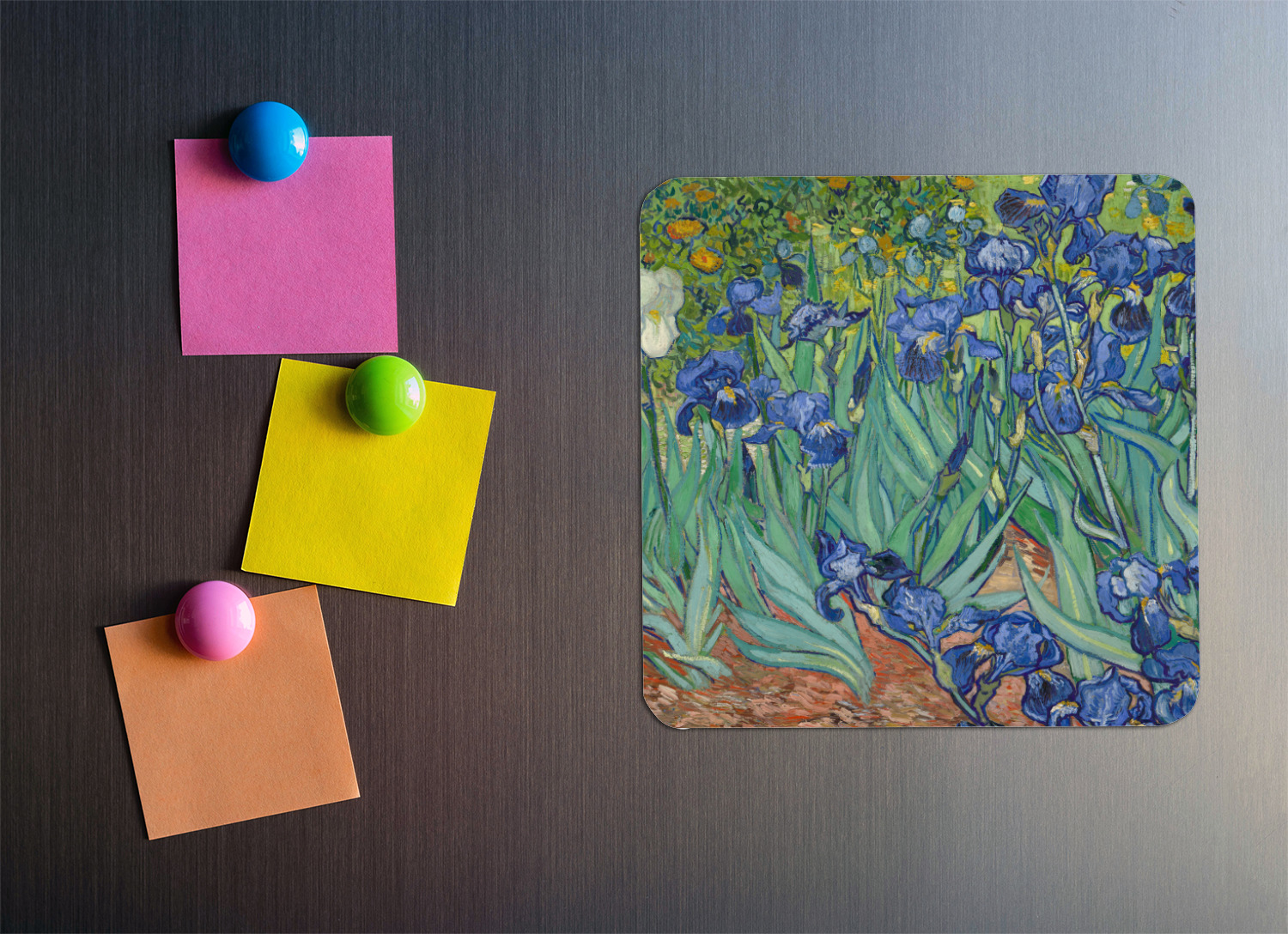 Irises is one of several paintings of irises by the Dutch artist Vincent van Gogh, and one of a series of paintings he executed at the Saint Paul-de-Mausole asylum in Saint-Remy-de-Provence, France, in the last year before his death in 1890. Van Gogh started painting Irises within a week of entering the asylum, in May 1889, working from nature in the hospital garden. There is a lack of the high tension which is seen in his later works. He called painting "the lightning conductor for my illness" because he felt that he could keep himself from going insane by continuing to paint. The painting was probably influenced by Japanese ukiyo-e woodblock prints like many of his works and those by other artists of the time. The similarities occur with strong outlines, unusual angles, including close-up views, and also flattish local colour (not modelled according to the fall of light).(Source: Wikipedia)