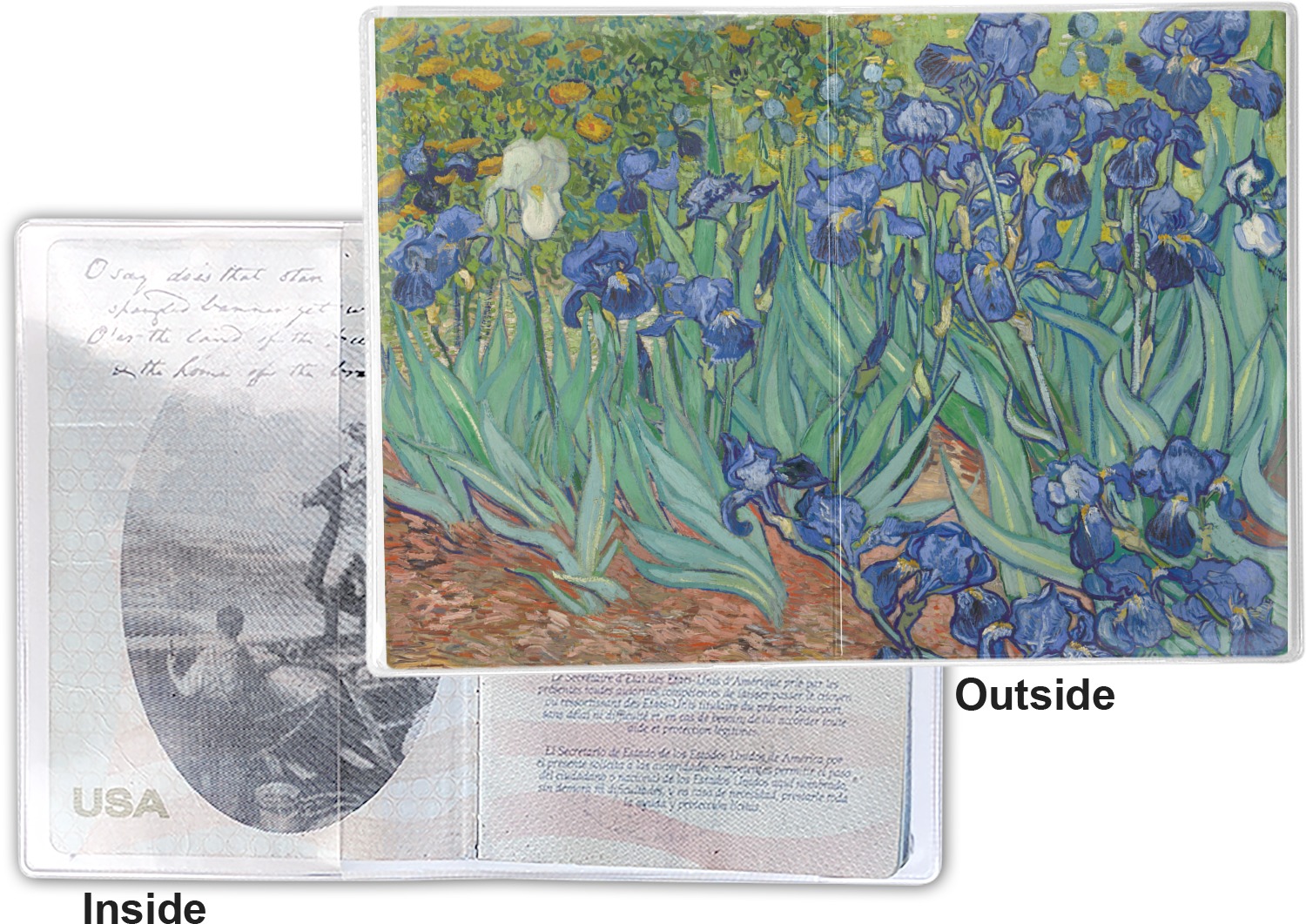 This cover is made of a sturdy clear vinyl with a personalized vinyl insert inside. There is a large and a small pocket on either side to hold the covers of your passport easily and firmly. The passport holder is approximately 7.5" x 5.25", the perfect size to snugly fit your passport. This slim cover is the perfect way to protect your passport without being one more bulky item you have to carry.