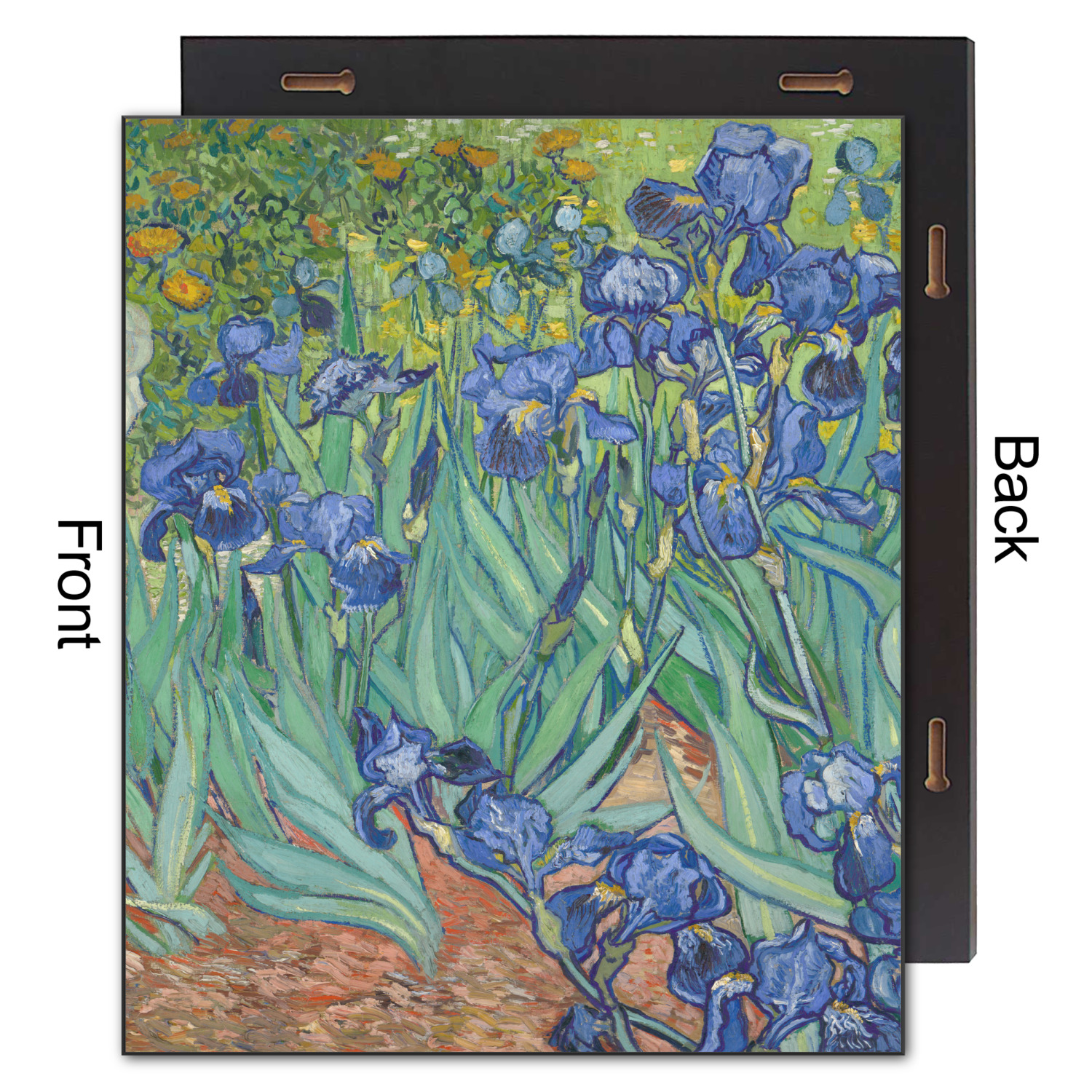 Irises is one of several paintings of irises by the Dutch artist Vincent van Gogh, and one of a series of paintings he executed at the Saint Paul-de-Mausole asylum in Saint-Remy-de-Provence, France, in the last year before his death in 1890. Van Gogh started painting Irises within a week of entering the asylum, in May 1889, working from nature in the hospital garden. There is a lack of the high tension which is seen in his later works. He called painting "the lightning conductor for my illness" because he felt that he could keep himself from going insane by continuing to paint. The painting was probably influenced by Japanese ukiyo-e woodblock prints like many of his works and those by other artists of the time. The similarities occur with strong outlines, unusual angles, including close-up views, and also flattish local colour (not modelled according to the fall of light).(Source: Wikipedia)