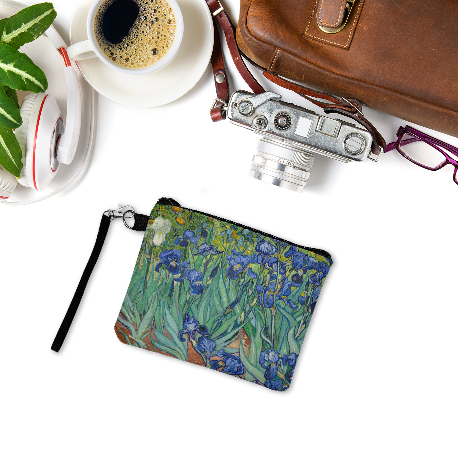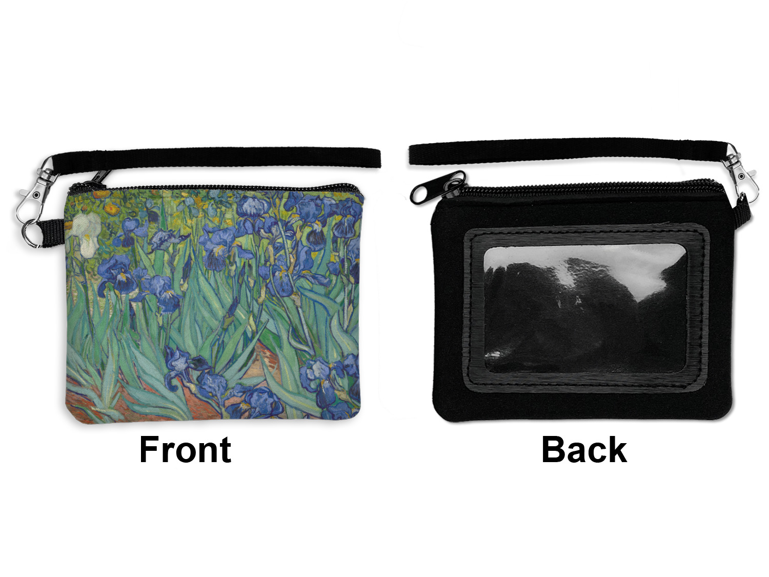 Now you can enjoy Irises on a daily basis. Well not all of it! To put this rectangular painting (roughly 4x3) on products, we use as much of the painting as we can on each product. So for a square product like the shower curtain - we use a 3x3 rectangle - which cuts off a little of the sides - but is still very much Irises For other products such as the wristlet (a wide 4x1 rectangle) - you get a small slice of the painting.