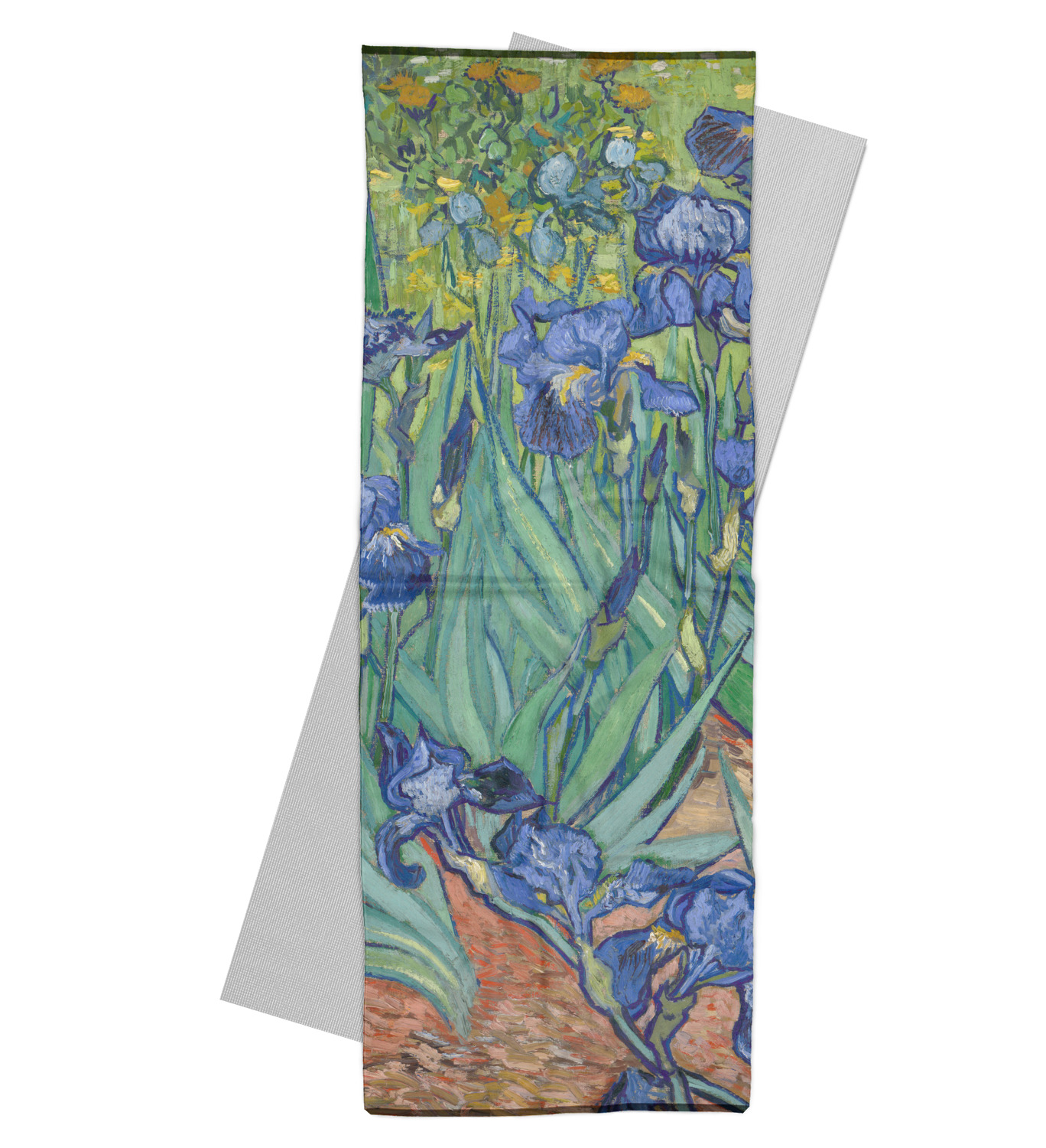 Irises is one of several paintings of irises by the Dutch artist Vincent van Gogh, and one of a series of paintings he executed at the Saint Paul-de-Mausole asylum in Saint-Remy-de-Provence, France, in the last year before his death in 1890. Van Gogh started painting Irises within a week of entering the asylum, in May 1889, working from nature in the hospital garden. There is a lack of the high tension which is seen in his later works. He called painting "the lightning conductor for my illness" because he felt that he could keep himself from going insane by continuing to paint. The painting was probably influenced by Japanese ukiyo-e woodblock prints like many of his works and those by other artists of the time. The similarities occur with strong outlines, unusual angles, including close-up views, and also flattish local colour (not modelled according to the fall of light).(Source: Wikipedia)